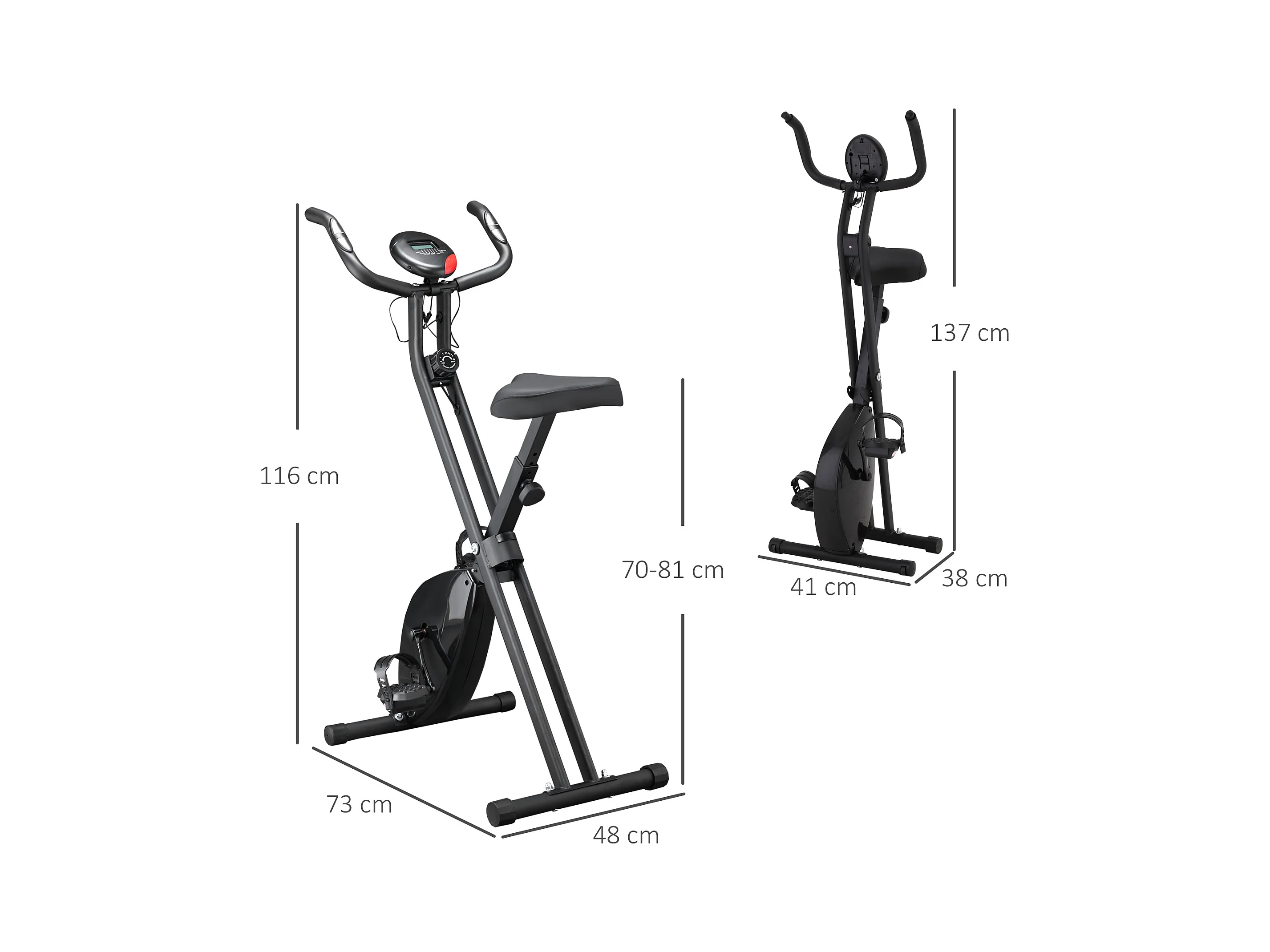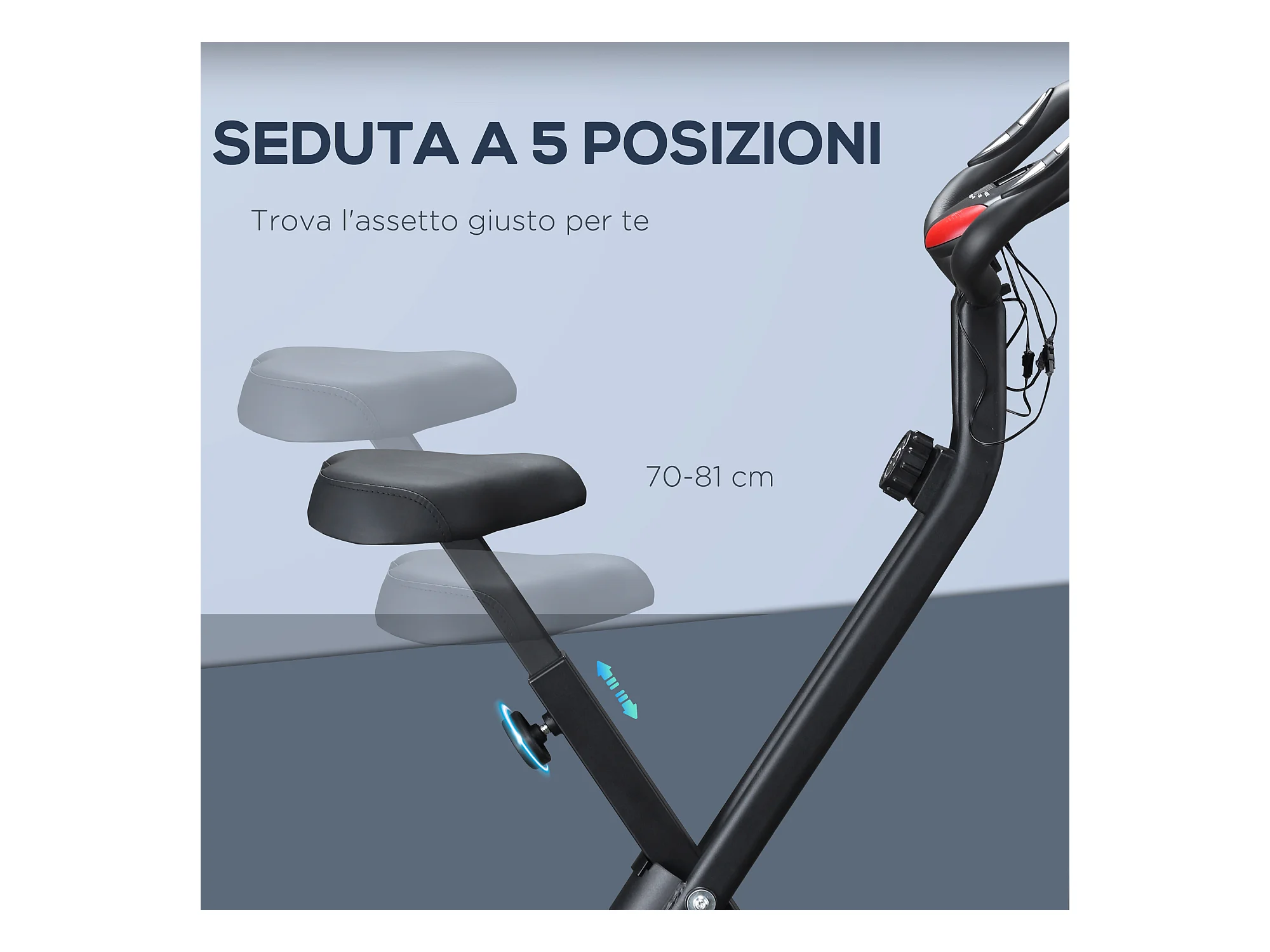Cyclette pieghevole con resistenza magnetica a 8 livelli, sedile regolabile, telaio in acciaio, nero-grigio (43x97x109cm)