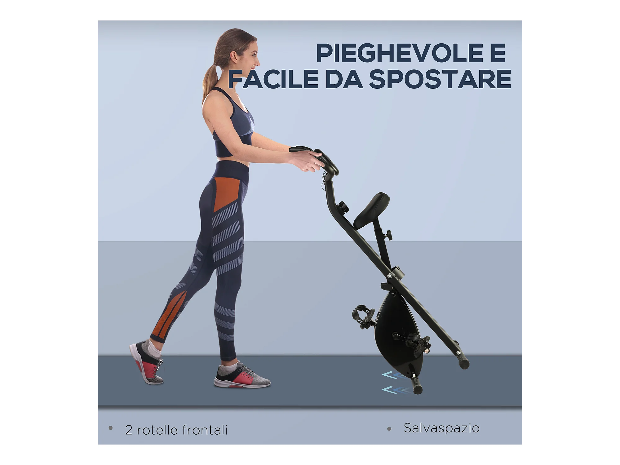Cyclette pieghevole 2 in 1, resistenza magnetica a 8 livelli, acciaio, nero (105x48x118 cm)