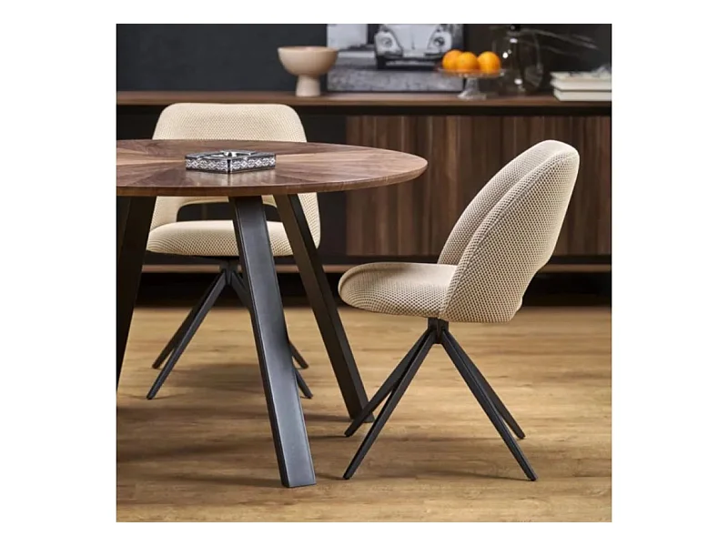 Sedia in tessuto beige con gambe in acciaio nero LAW