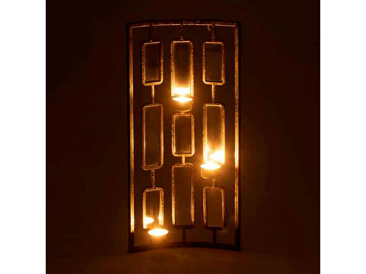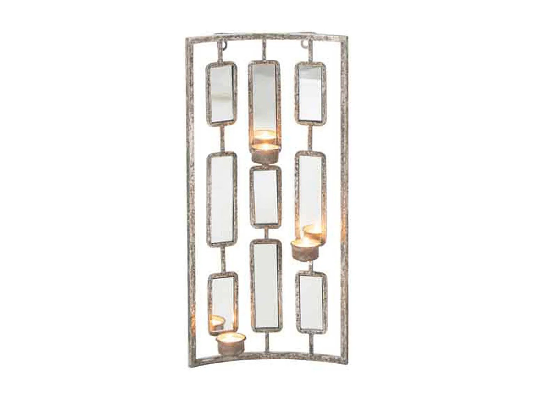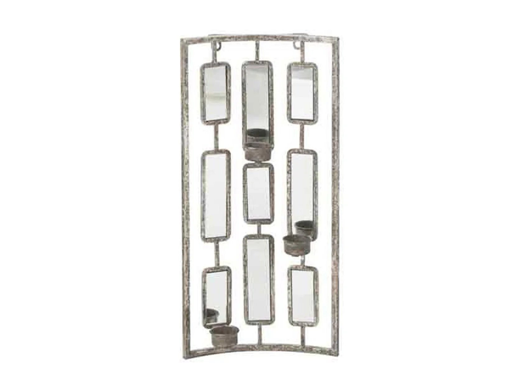 Decorazione con specchio e portacandele in metallo grigio 25x4x52cm