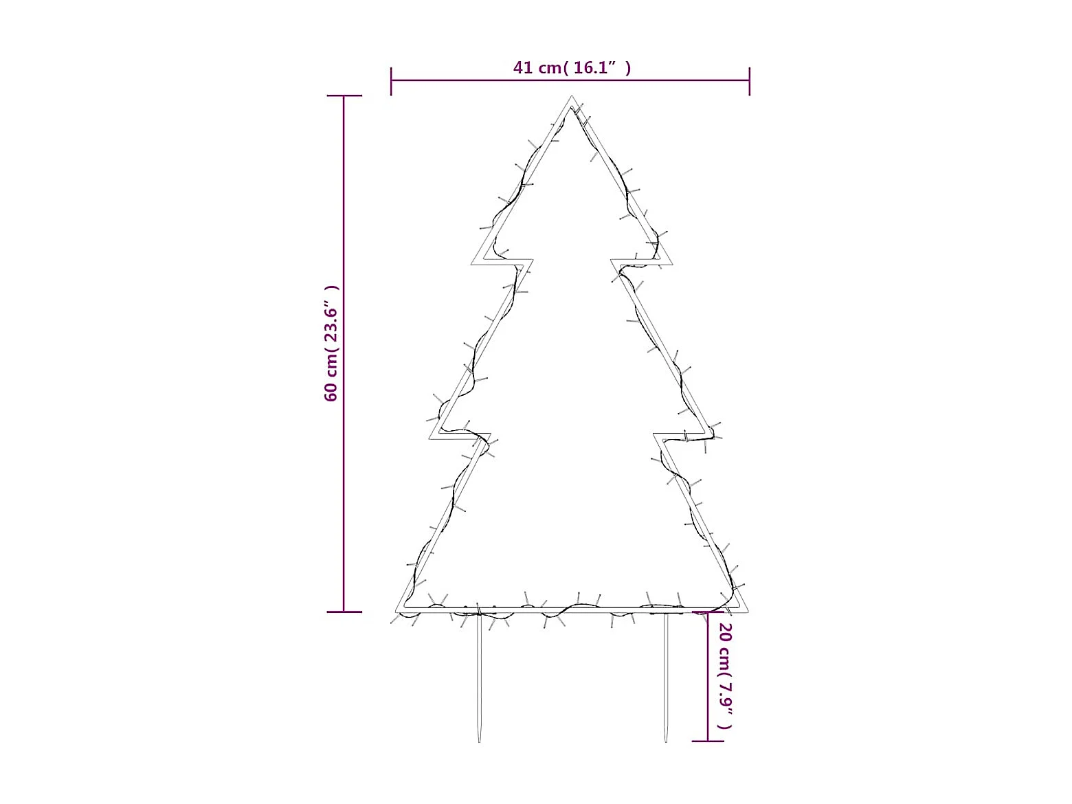 Decorazione luminosa per albero di Natale con picchetti 80 LED 60 cm