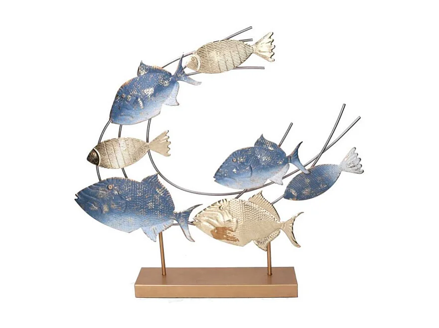 Decorazione metallo pesci oro azzurro cm 61x8,9h55,9