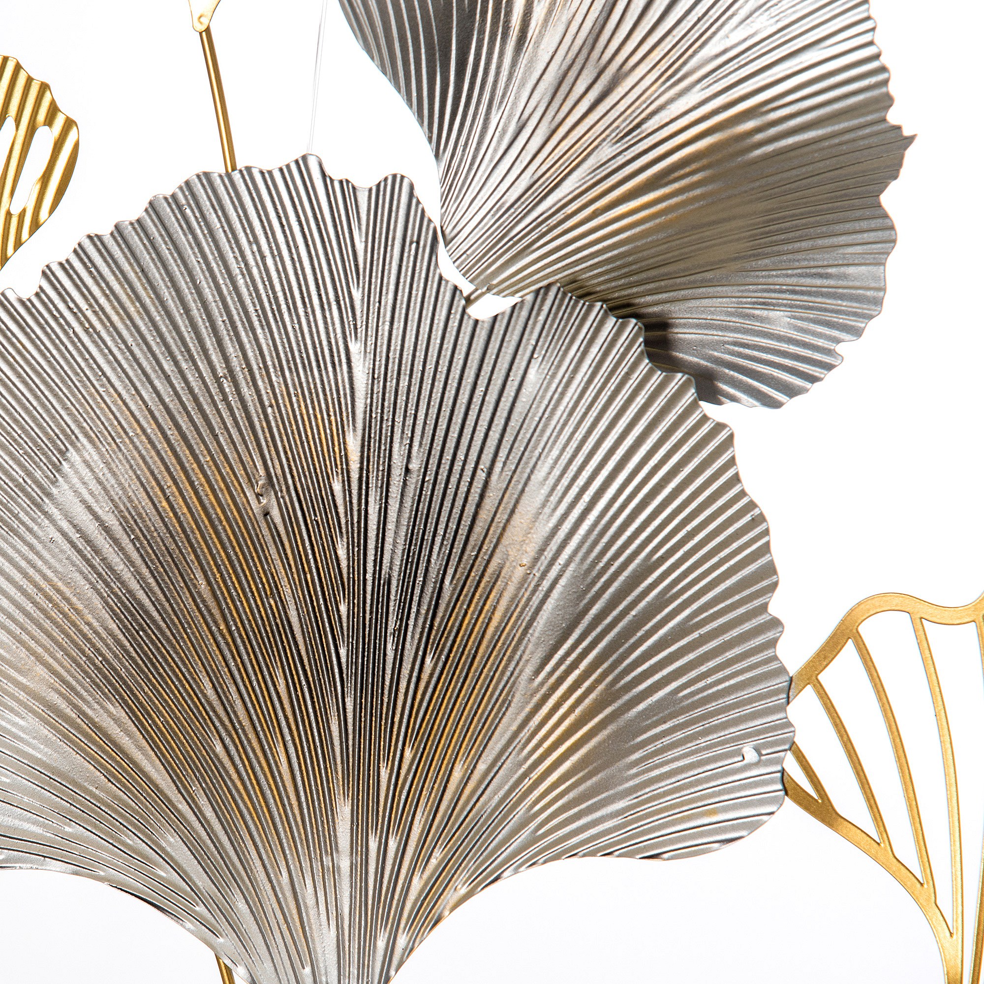 Decorazione murale 3d oro e argento con foglie di ginkgo