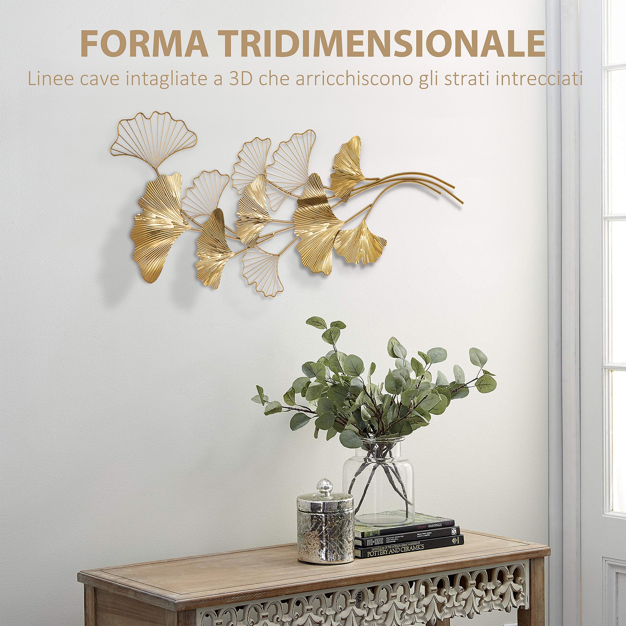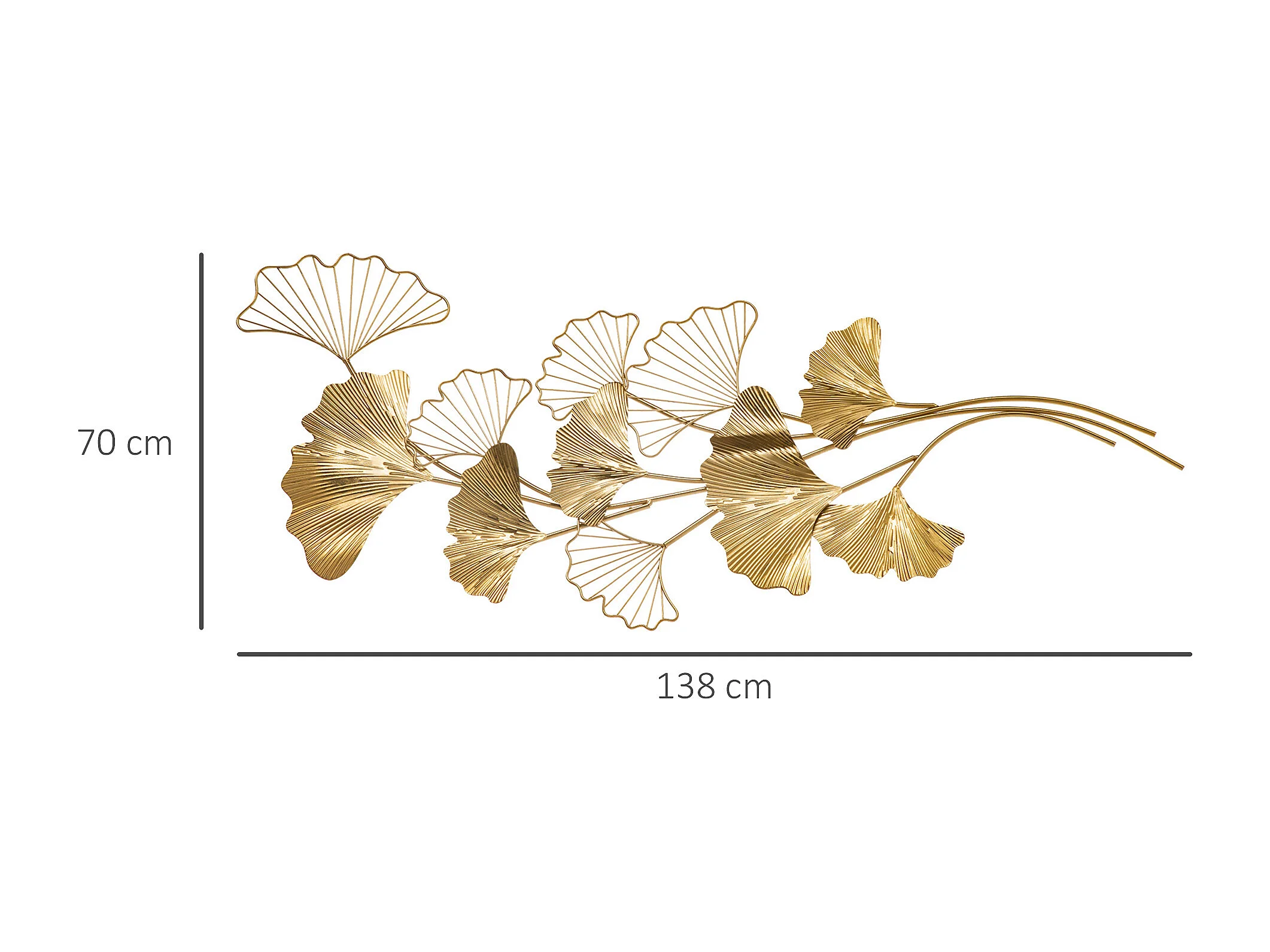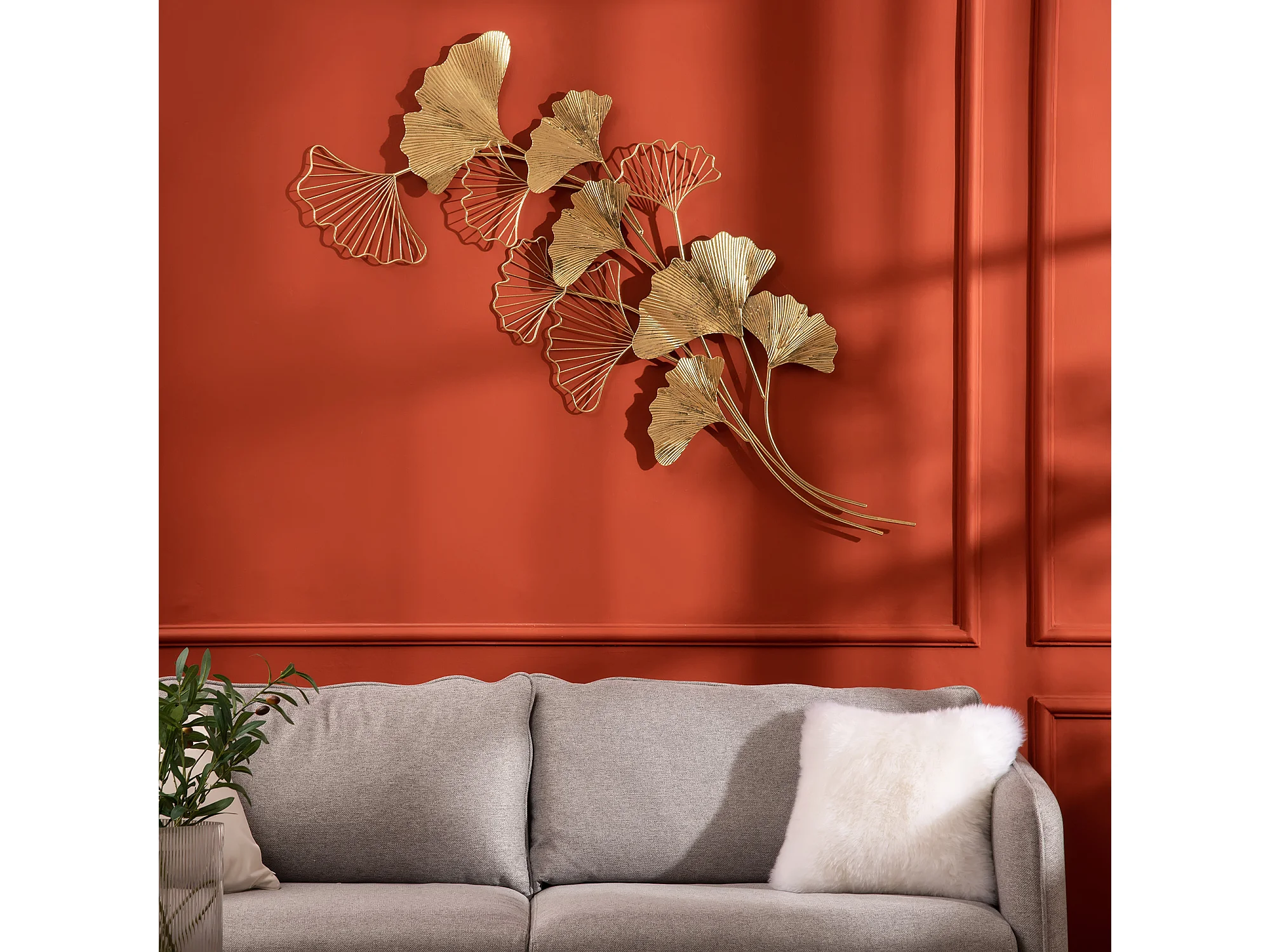 Decorazione murale 3d wall art con foglie di ginkgo 138x70cm