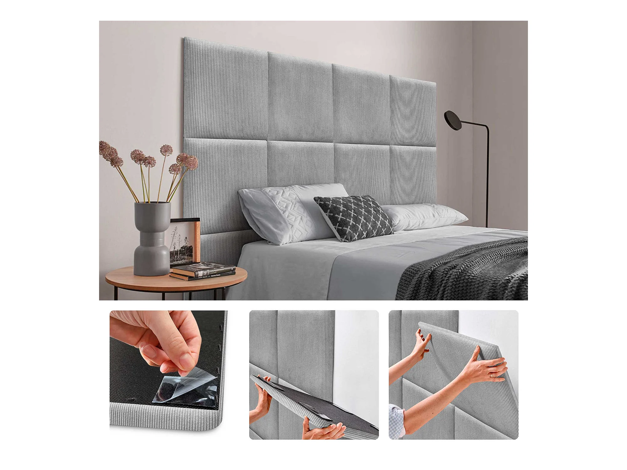 DHOME Pannelli Imbottiti in Velluto Premium Autoadesivi per Parete Acustici Assorbenti Protezione Impatti Testiere (Grigio, 50x50cm)