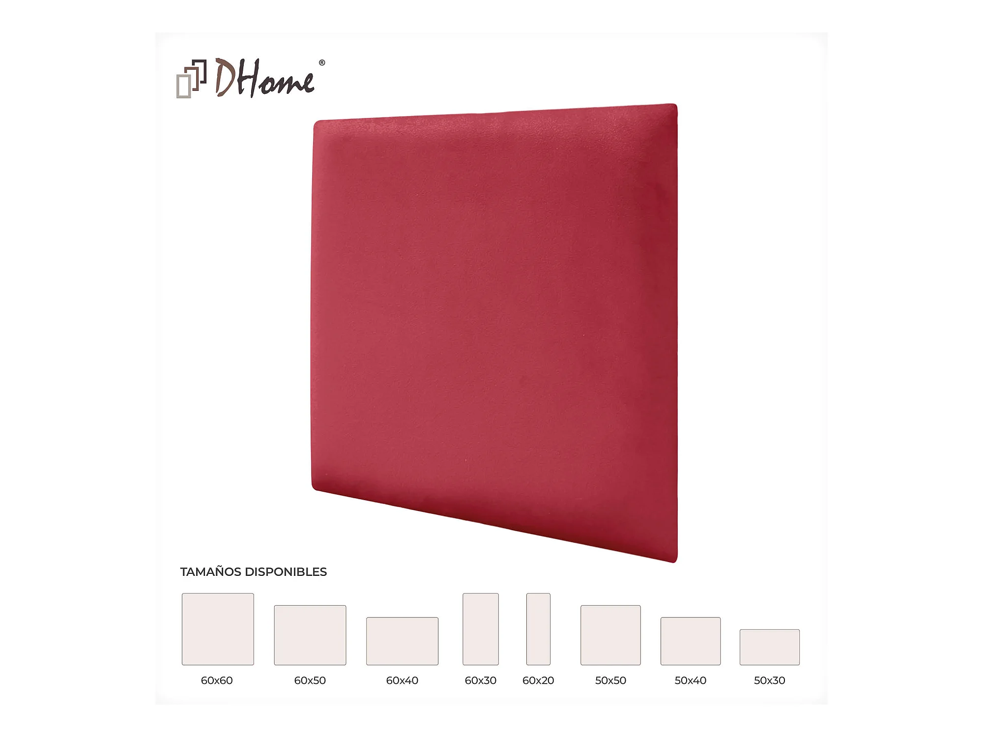 DHOME Pannelli Imbottiti in Velluto Premium Autoadesivi per Parete Fonoassorbenti Protezione Impatti Testiere (Rosso, 60x50cm)
