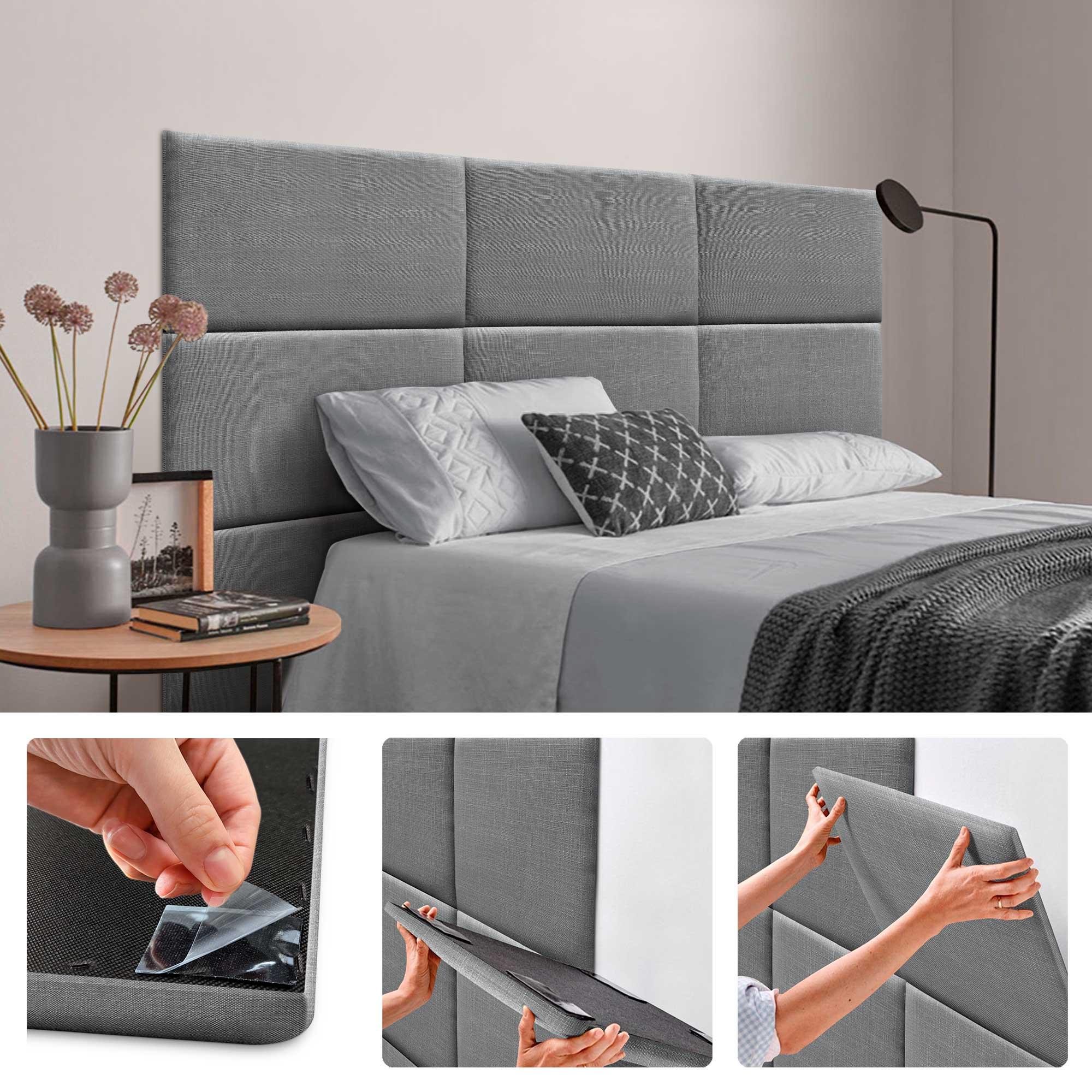 DHOME Pannelli Rivestiti in Lino Autoadesivi per Parete Fonoassorbenti Assorbenti Protezione Impatti Testiere Decorazione (Grigio Chiaro, 60x40cm)