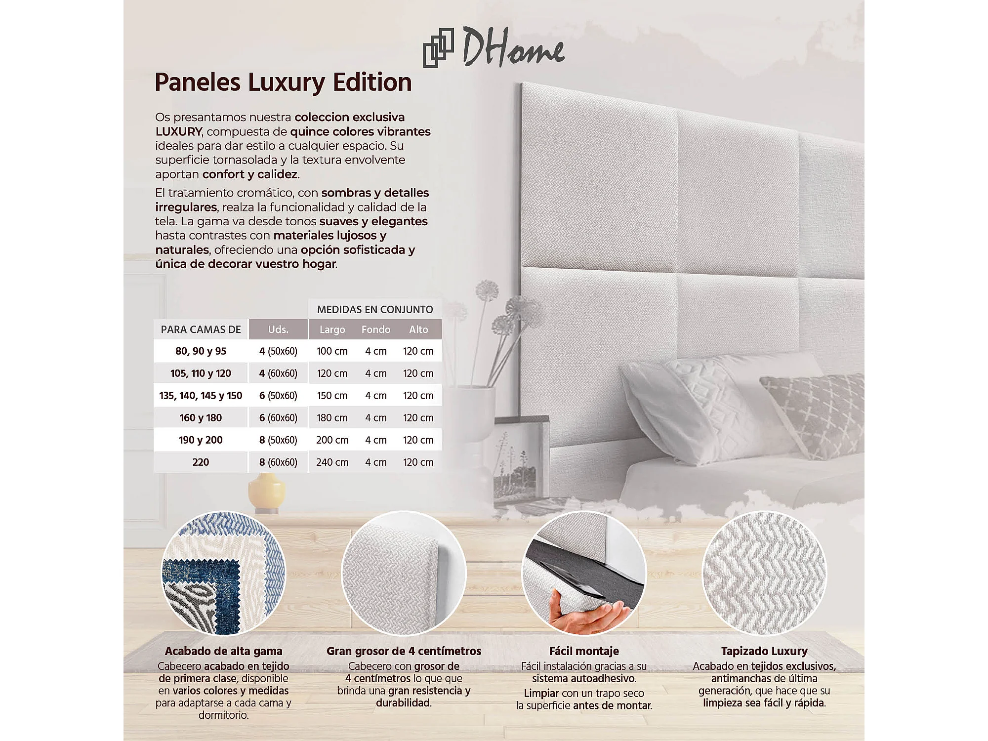 DHOME Testiera Imbottita Composta da Pannelli Autoadesivi Intercambiabili Serie Luxury Edition Letto di Lusso Camera da Letto (Spighe Beige, 150cm)
