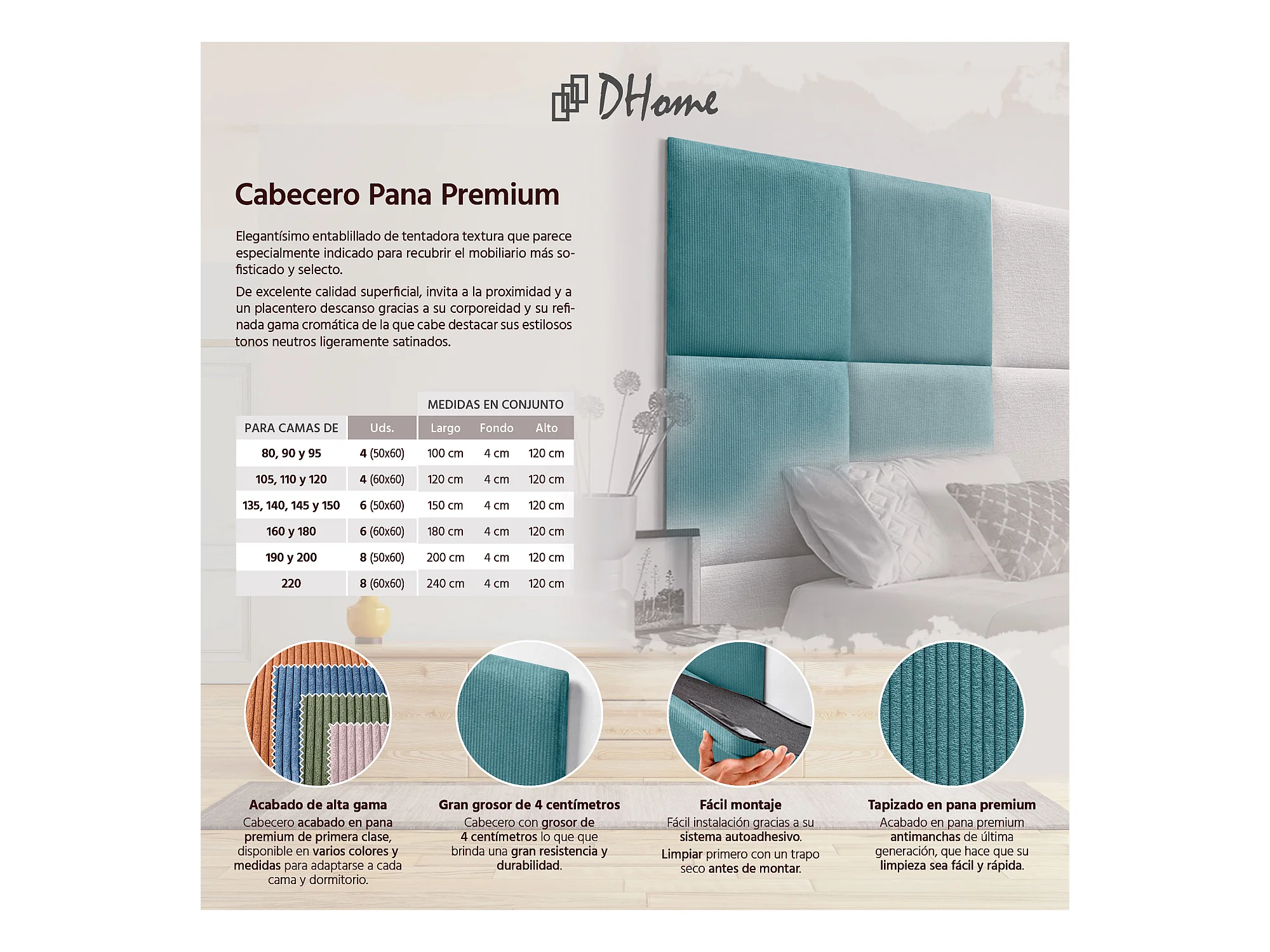DHOME Testiera imbottita in velluto a coste premium composta da pannelli autoadesivi intercambiabili Camera imbottita (Turchese,135 cm)