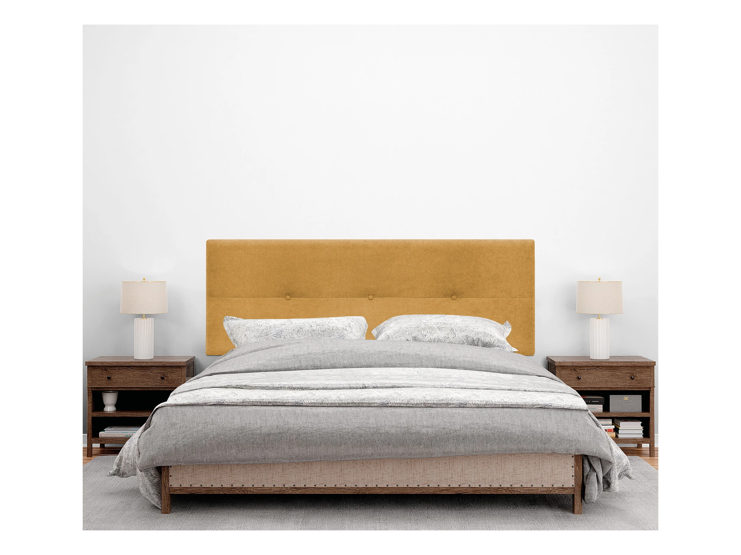 DHOME Testiera in de Tessuto Aqualine con bottoni 145x105cm Con le gambe Letti 135/140 - Mostarda