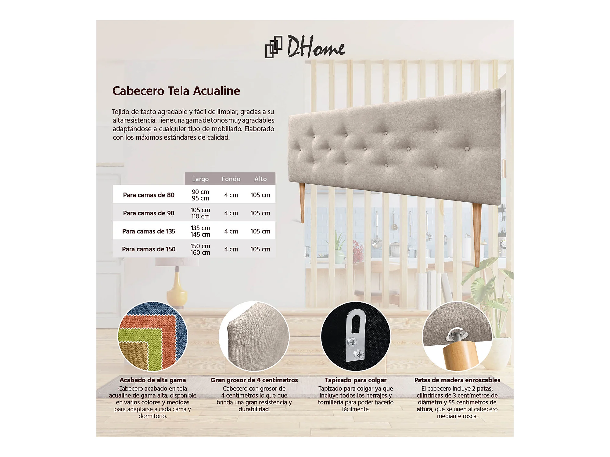 DHOME Testiera in Tessuto ACUALINE con 3 File Intercalate di Bottoni e Piedini Testiera Imbottita Letto di Lusso (Beige, 145cm)