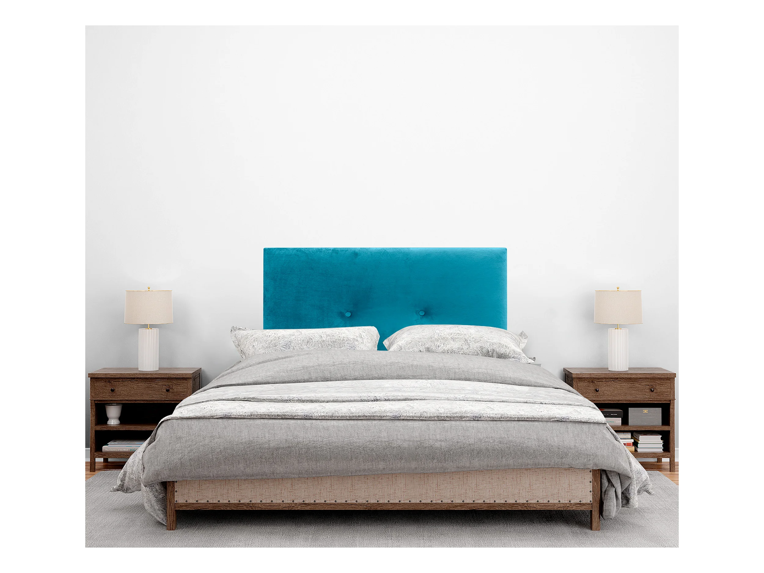 Testata da letto in velluto blu