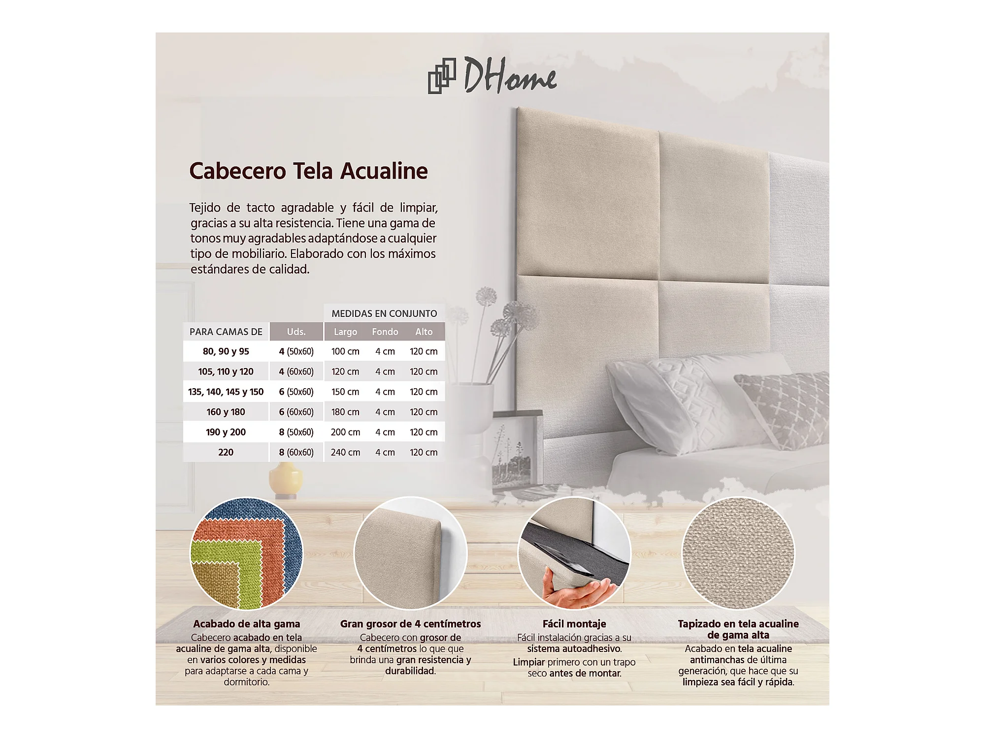 DHOME Testiera Rivestita in Tessuto Aqualine Composta da Pannelli Letto Intercambiabili Autoadesivi Camera da Letto di Lusso(Beige, 80cm)