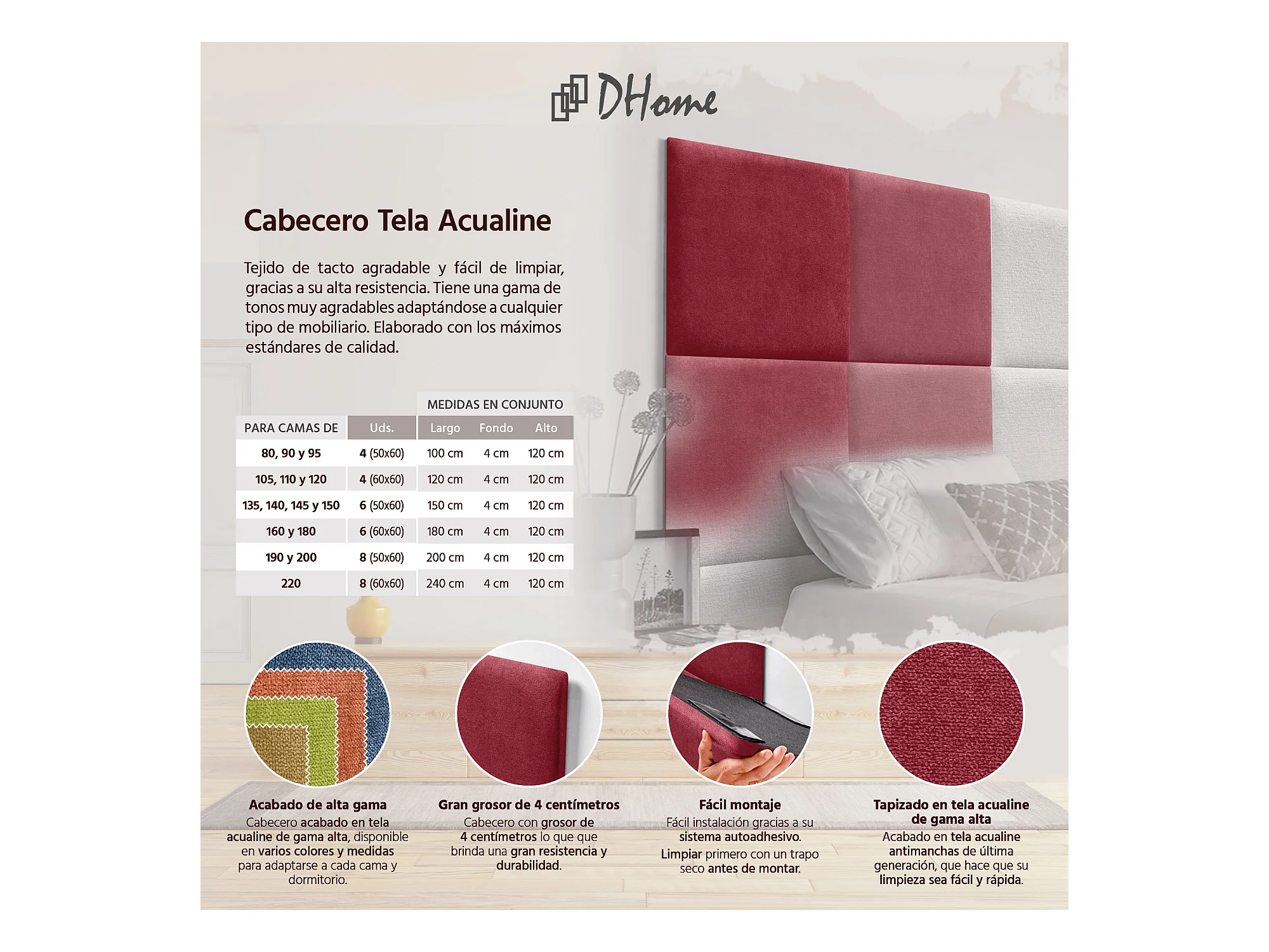 DHOME Testiera Rivestita in Tessuto Aqualine Composta da Pannelli Letto Intercambiabili Autoadesivi Camera da Letto di Lusso(Rosso, 220cm)