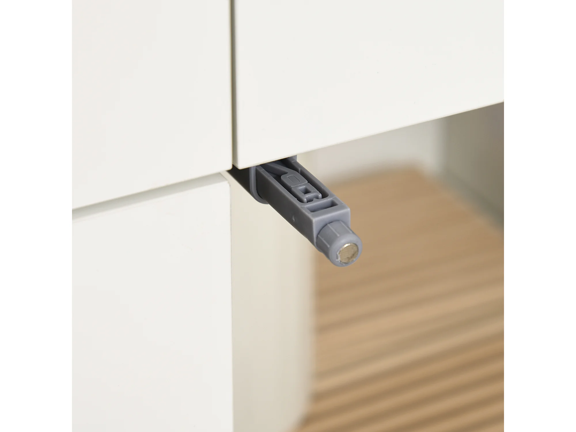 Credenza con 2 armadietti ripiano aperto e 3 cassetti in legno bianco