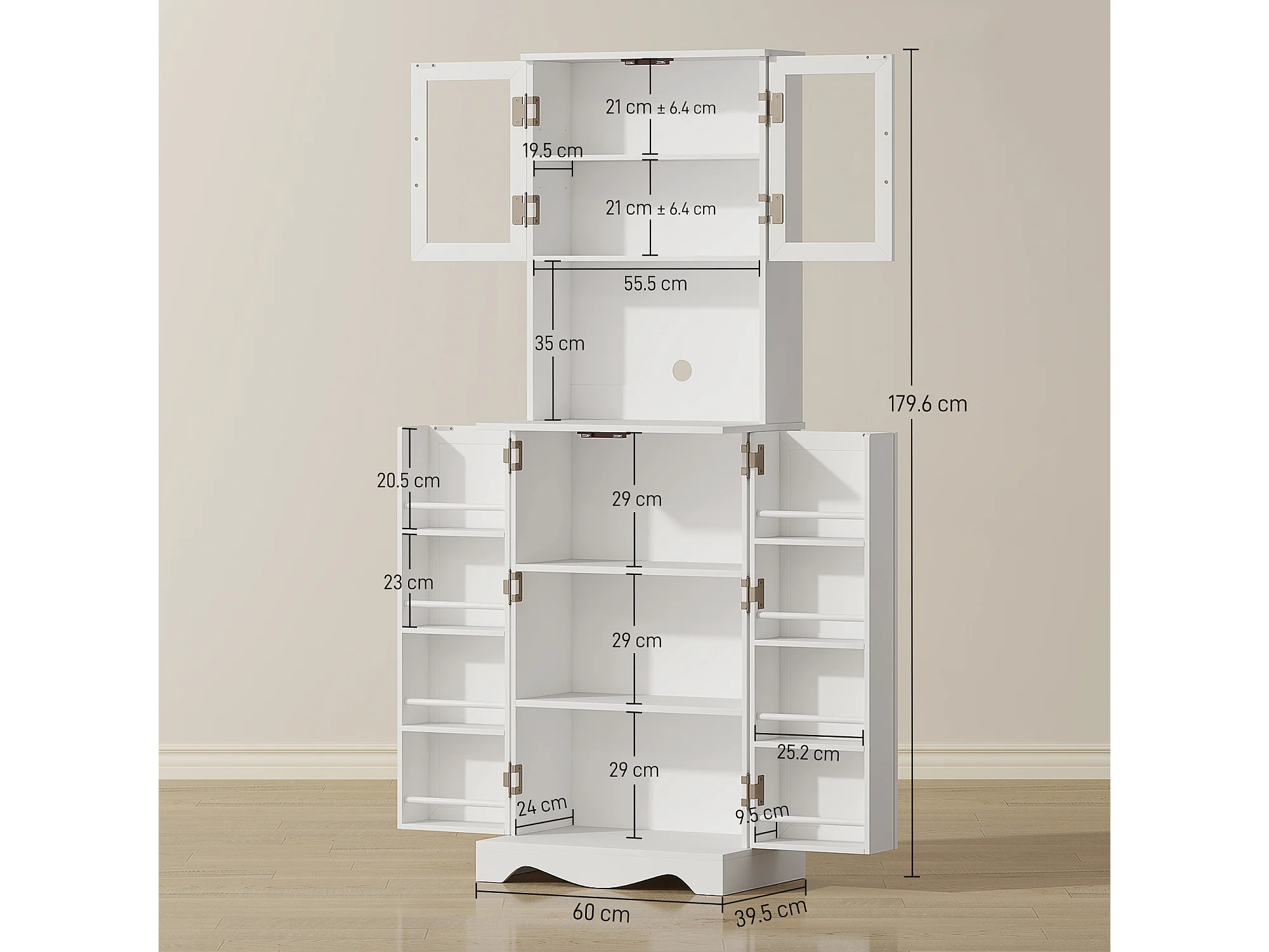Dispensa cucina con 2 armadietti e 8 ripiani 60x39.5x179.6 cm bianco