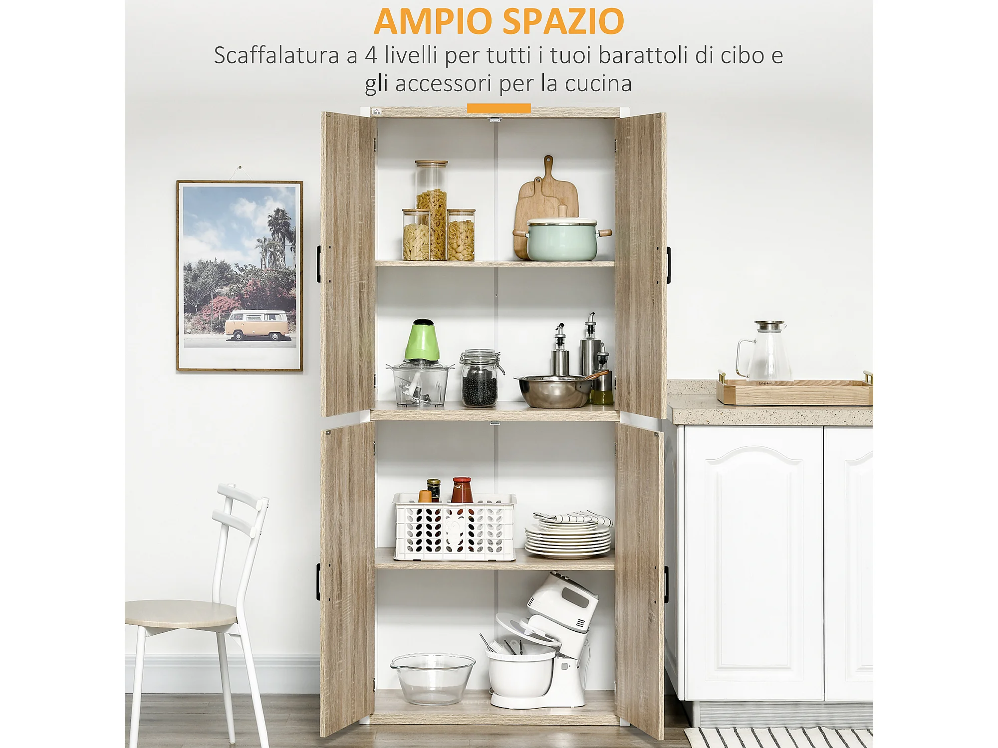 Dispensa cucina in legno mdf con 4 ripiani e 4 porte bianco