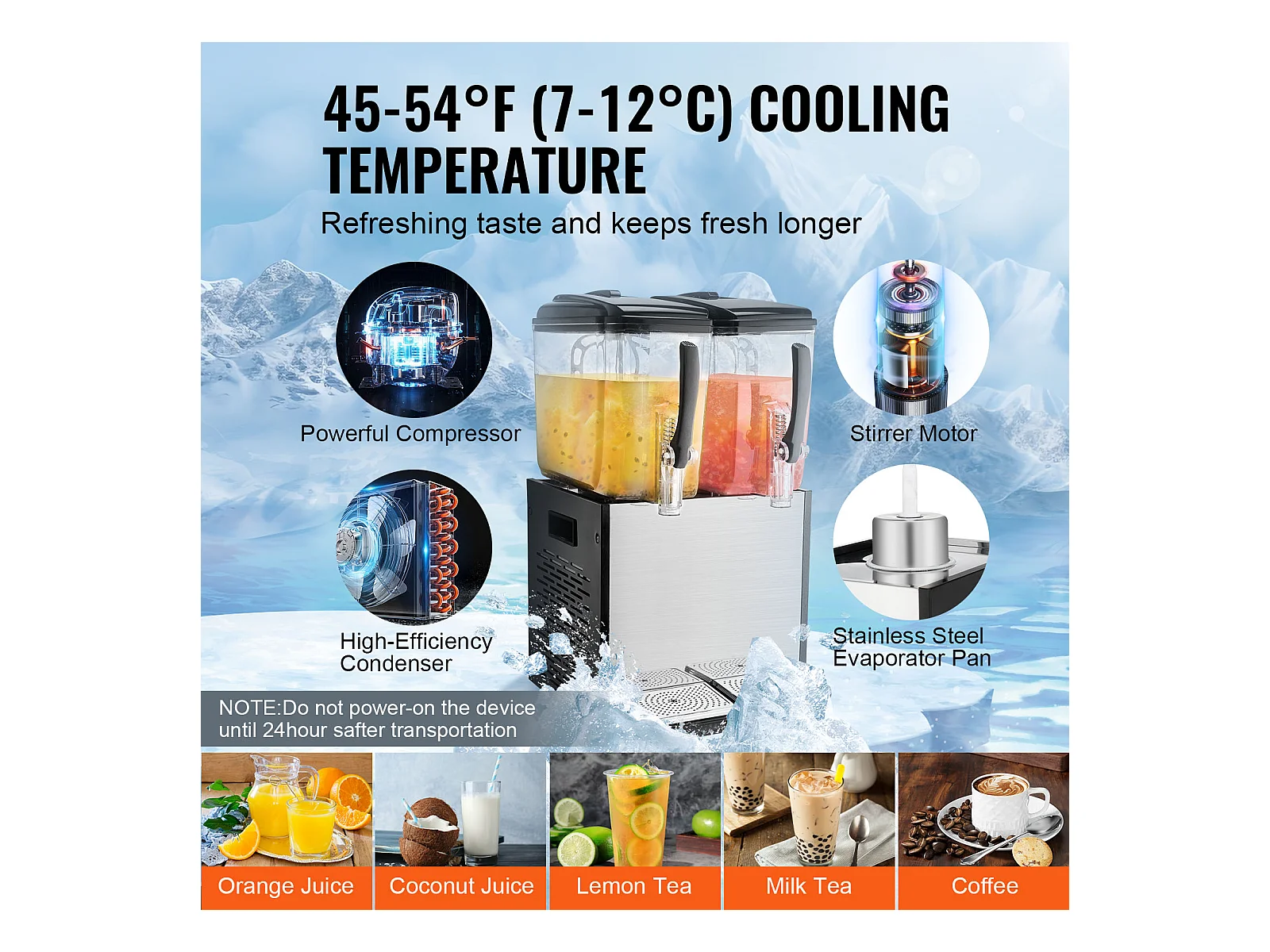 Distributore di Bevande Commerciale SucceBuy 12 L x 2 Serbatoi, Distributore di Bevande Ghiacciate e Succhi Freddi