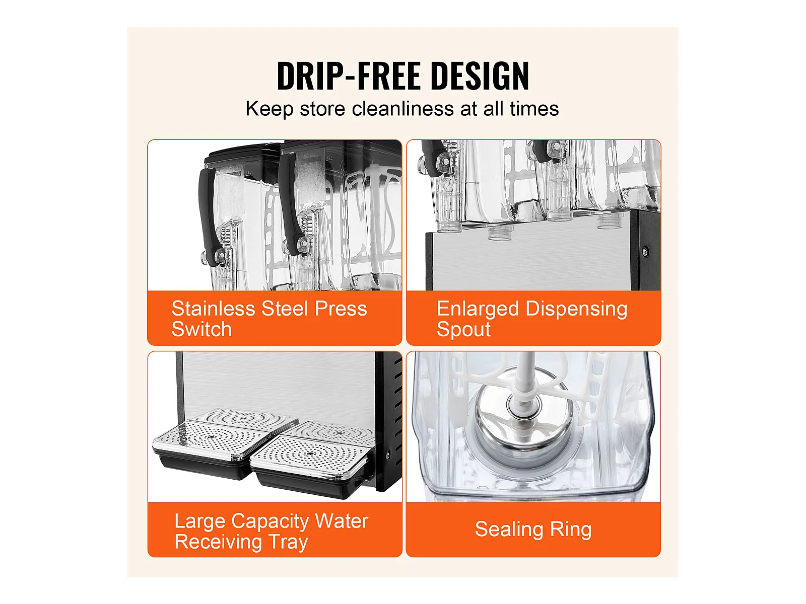 Distributore di Bevande Commerciale SucceBuy 18 L x 3 Serbatoi Distributore di Bevande Ghiacciate e Succhi Freddi