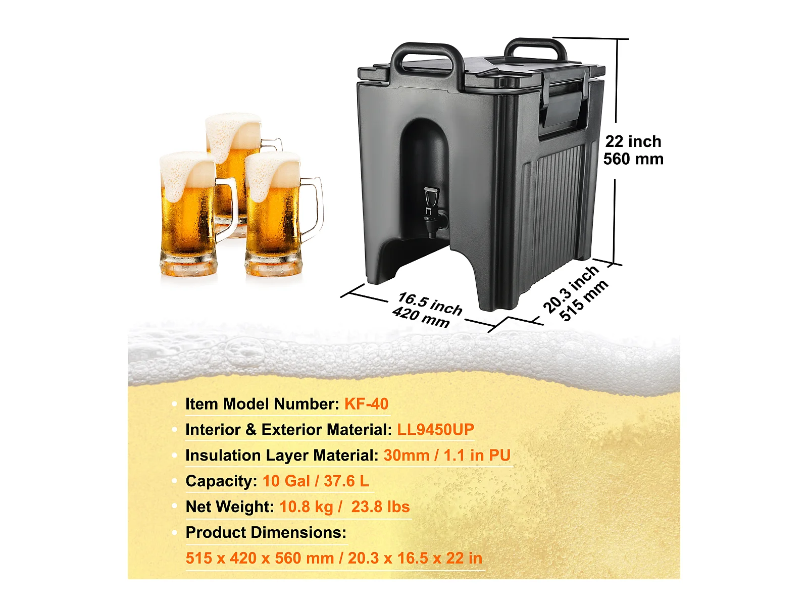 Distributore di Bevande, SucceBuy Distributore di Bevande Isolato per Alimenti da 38 L