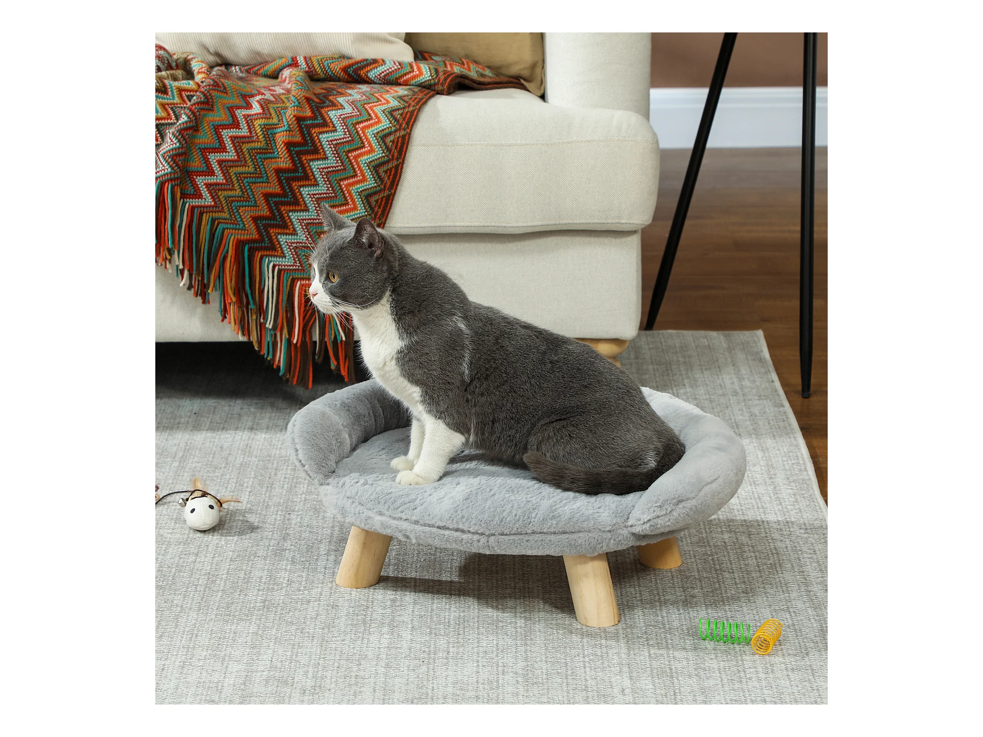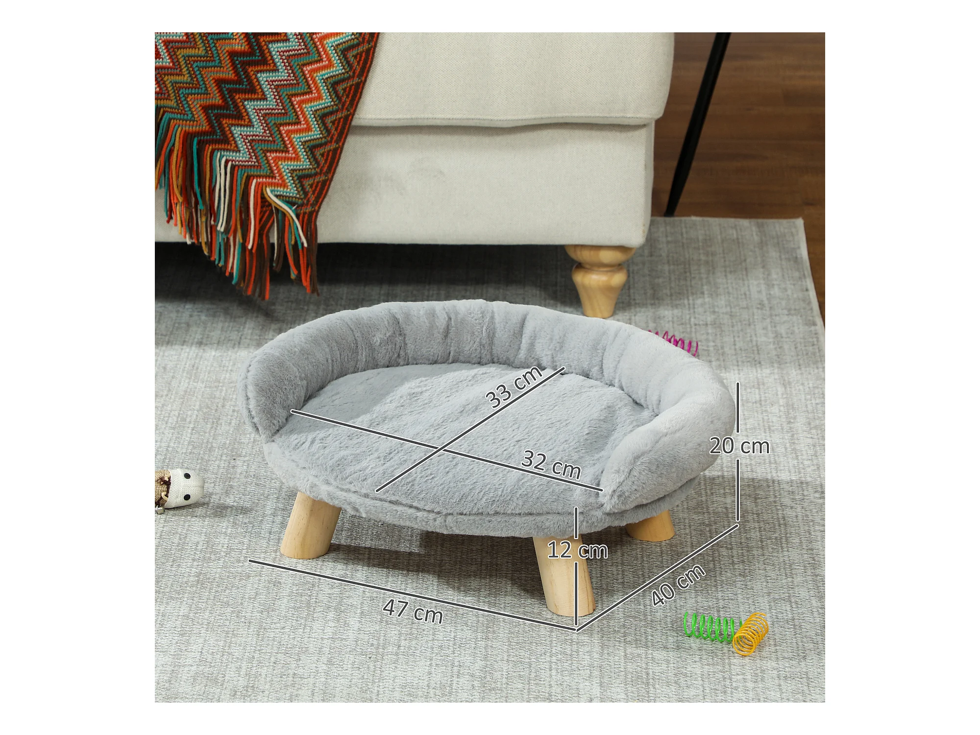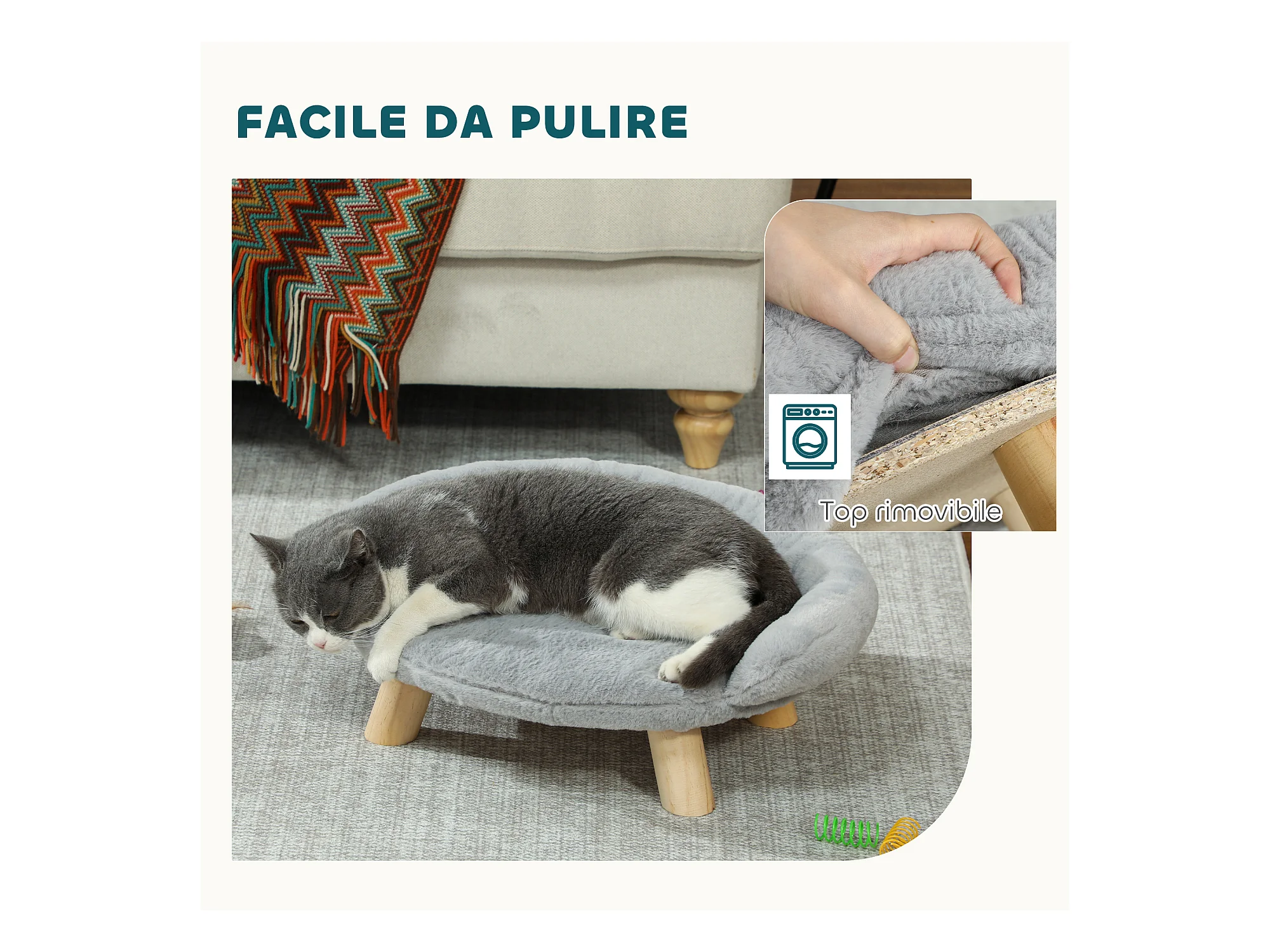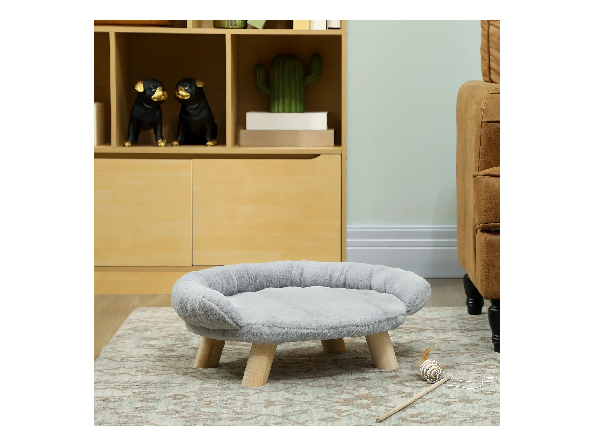 Divano per cani e gatti con cuscino imbottito in velluto e legno grigio