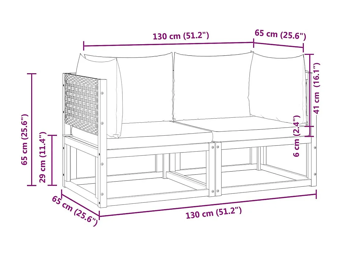 Divani Angolari da Giardino con Cuscini 2pz Massello Acacia