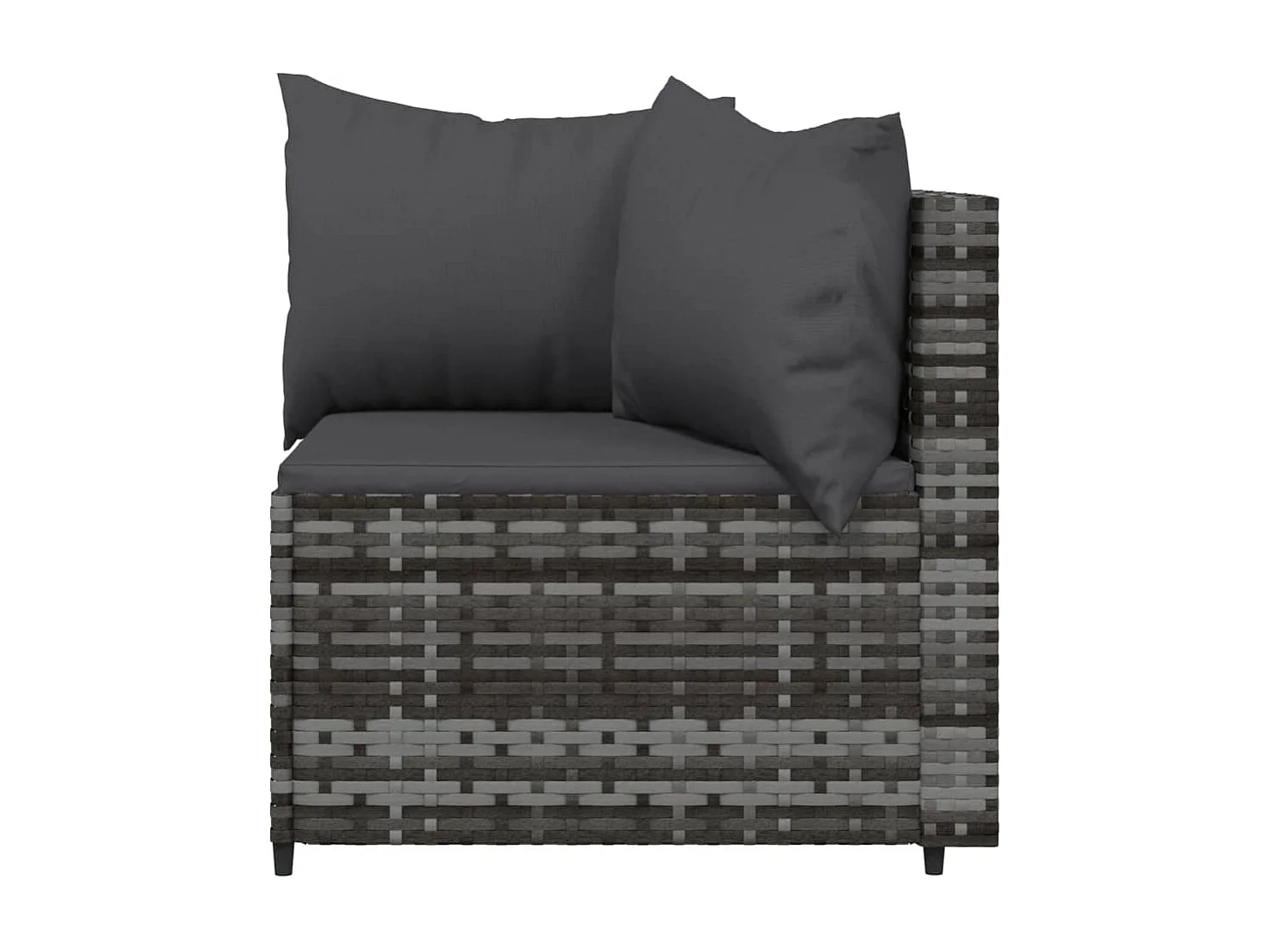 Divani angolari da giardino e cuscini 2 pezzi in resina intrecciata grigia