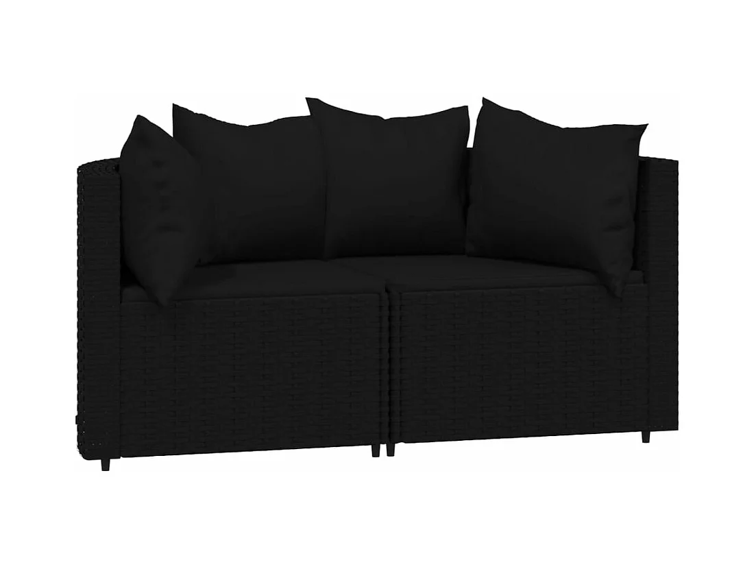 Divano da giardino a 2 posti con cuscini In vimini resinato Nero