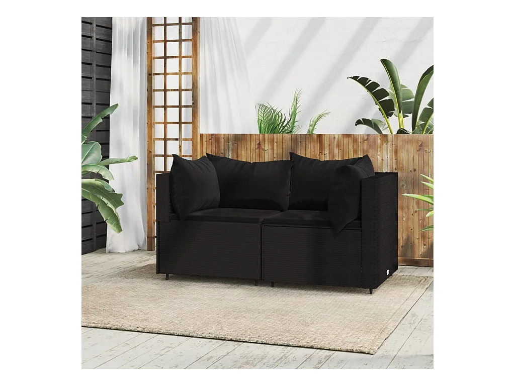Divano da giardino a 2 posti con cuscini In vimini resinato Nero