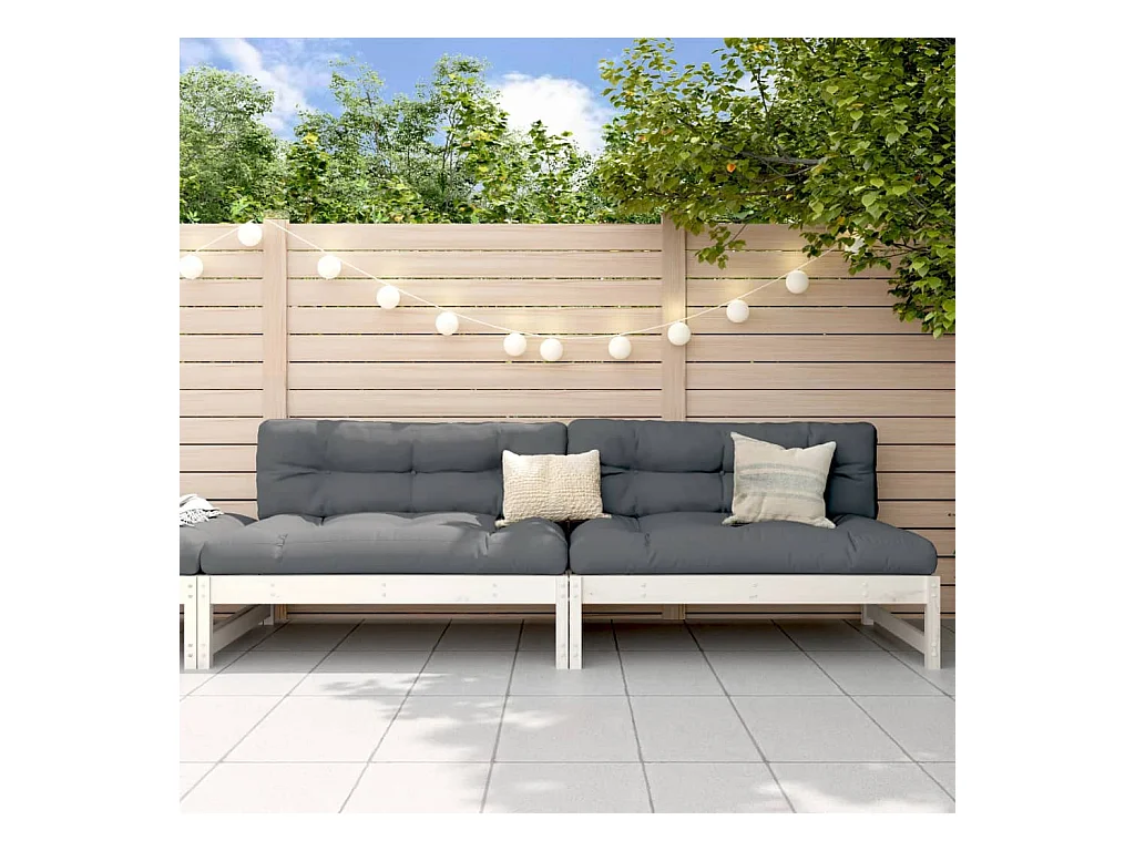 Divani da giardino centrali 2 pezzi in legno di pino massiccio bianco