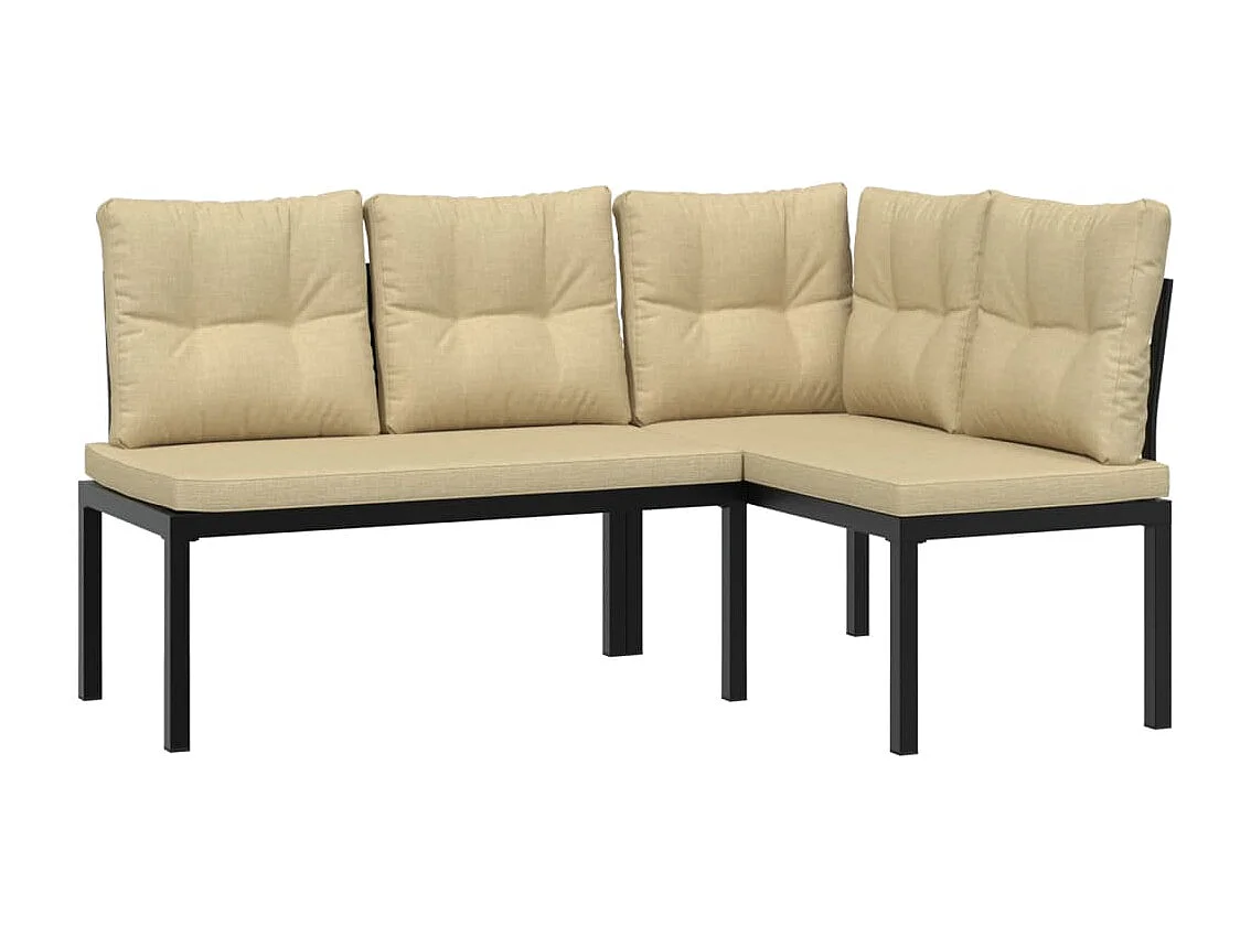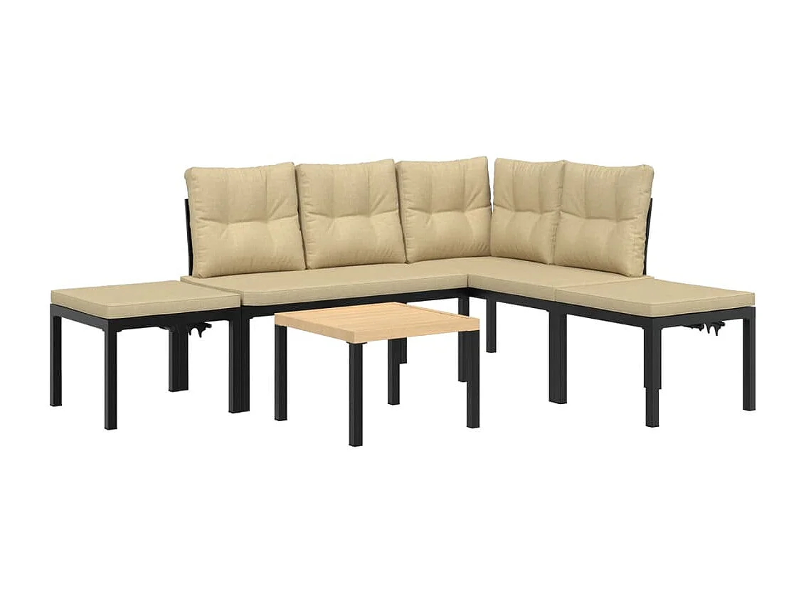 Divani Giardino con Cuscini 5pz Neri Acciaio Verniciato Polvere