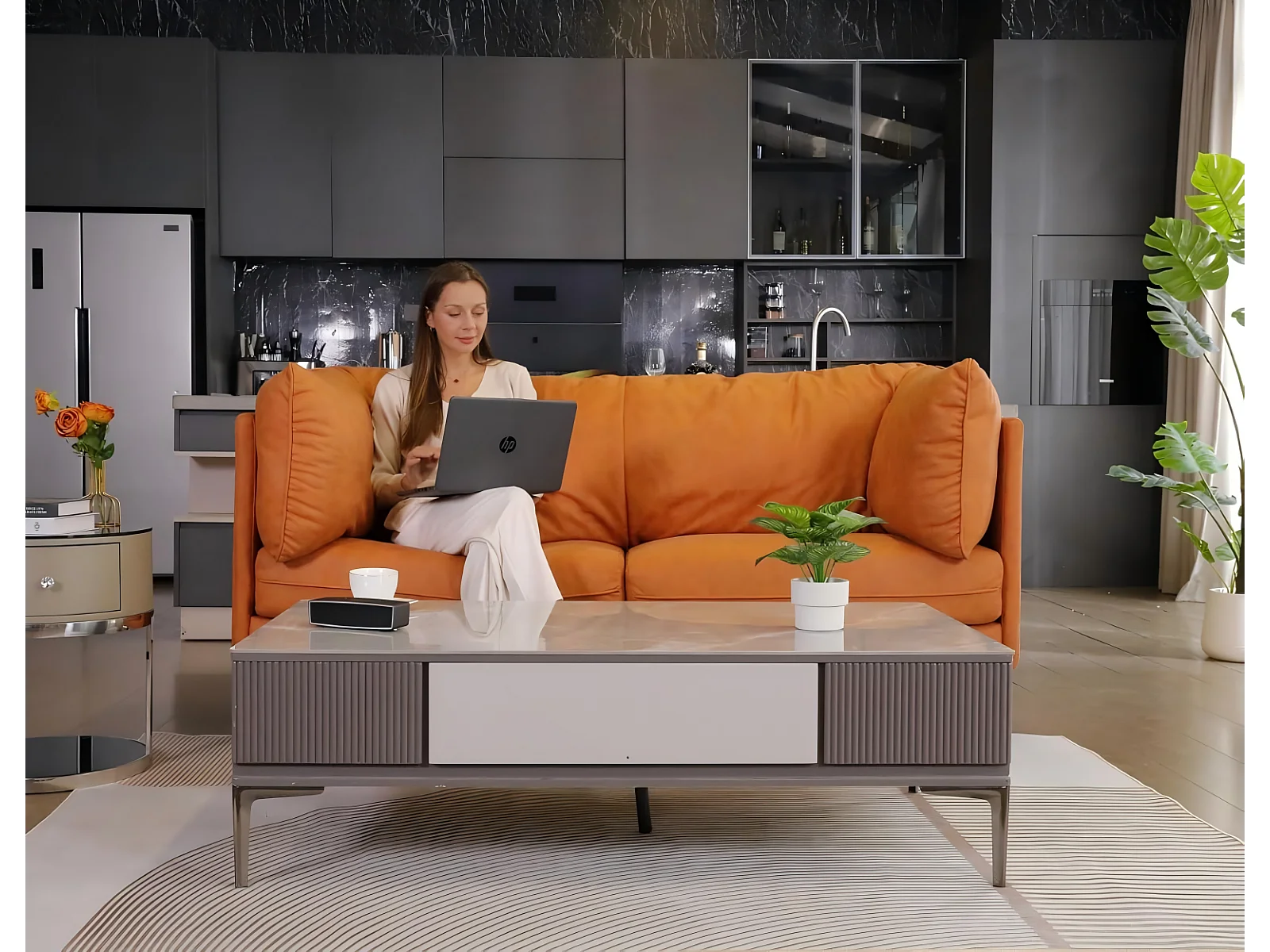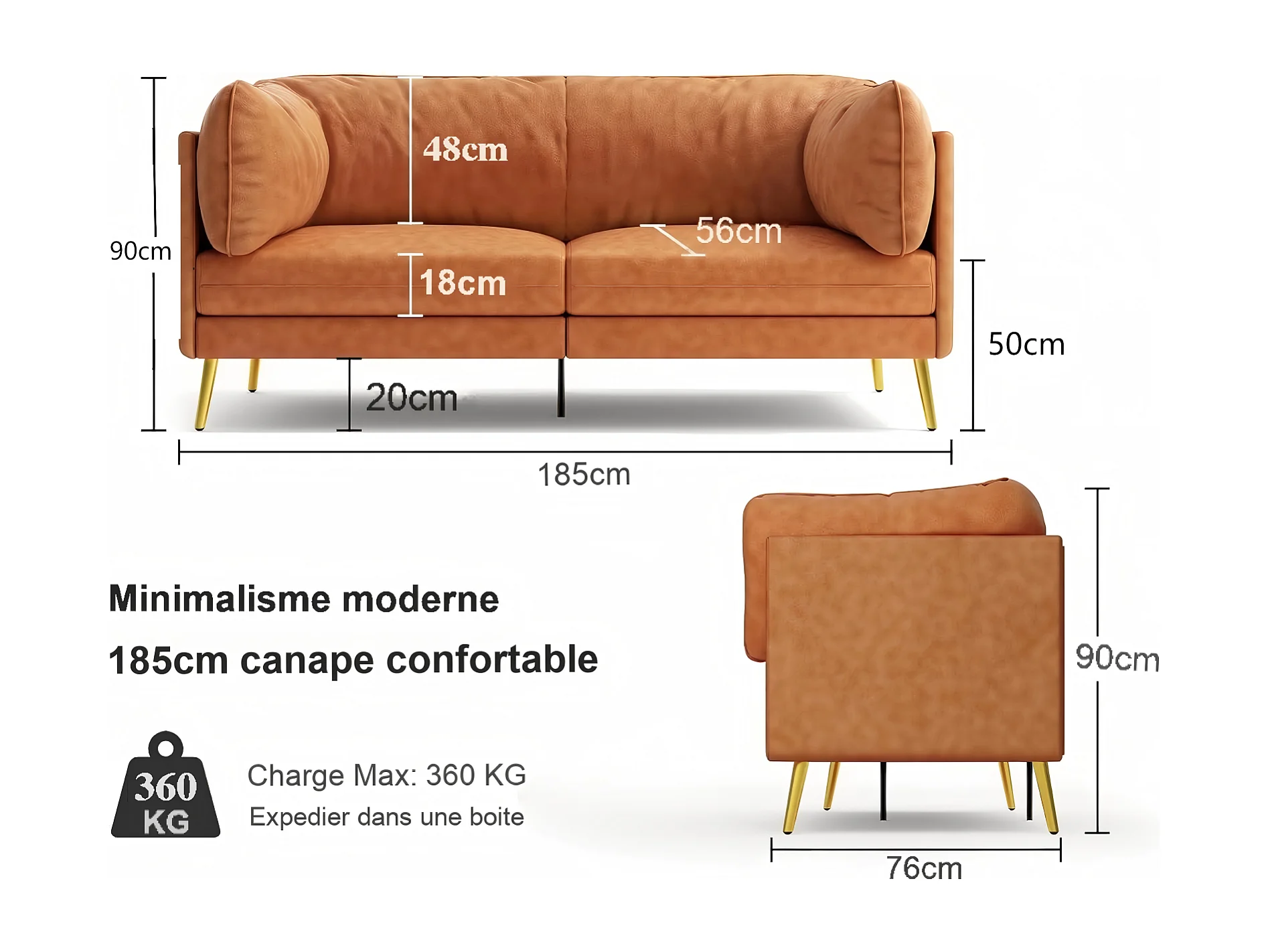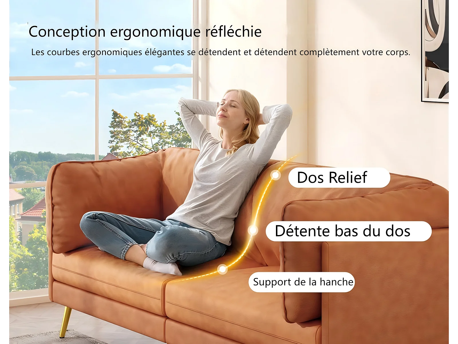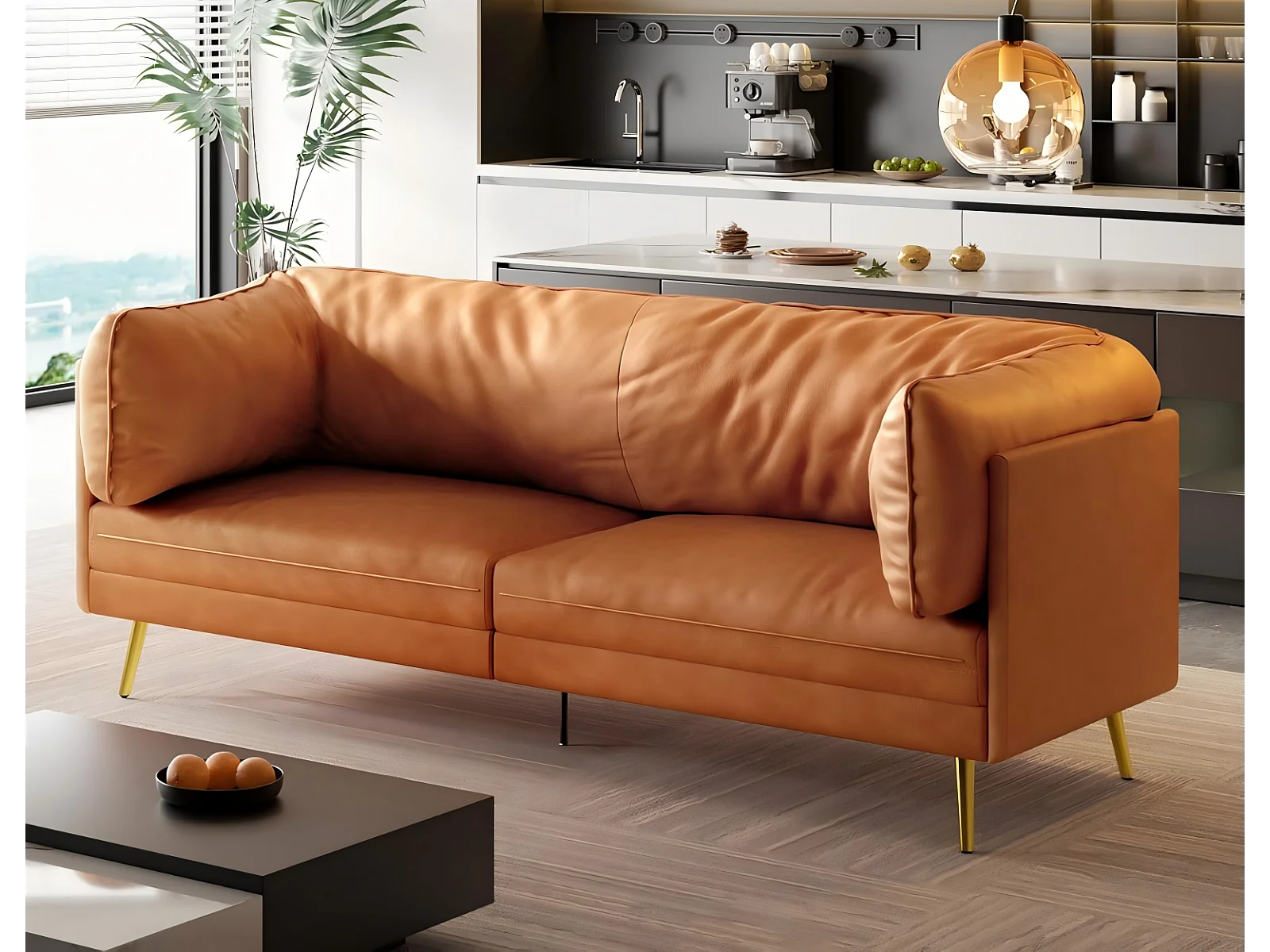 Divano 2/3 posti in similpelle, con cuscini del sedile profondi e comodi da 56 cm, 185x76x90 cm, arancione