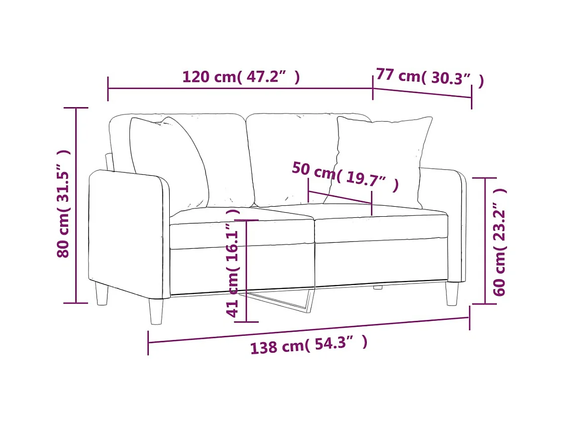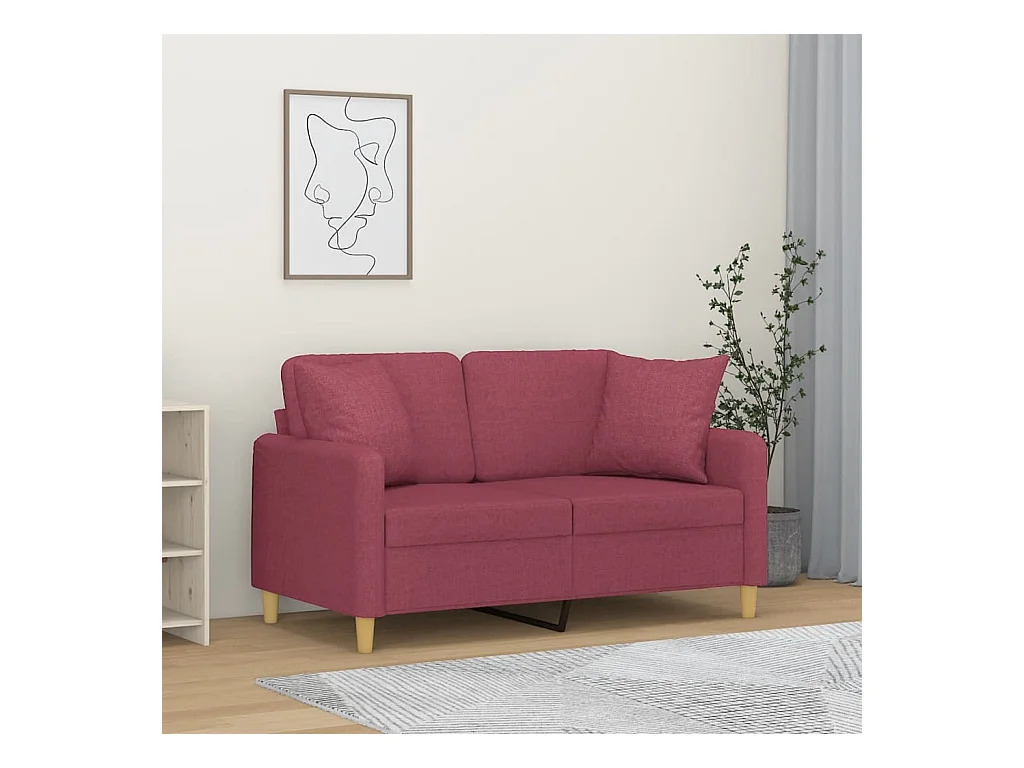 Divano 2 posti con cuscini bordeaux tessuto 120 cm