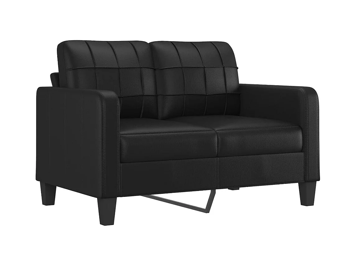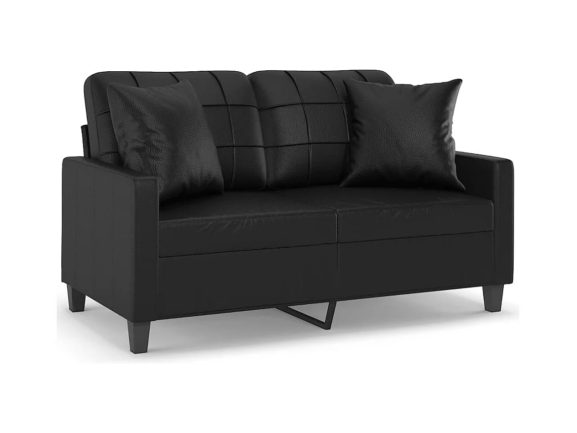 Divano 2 posti con cuscini decorativi in similpelle nera da 120 cm