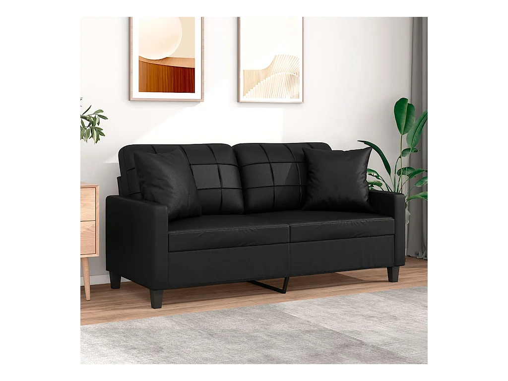 Divano 2 posti con cuscini decorativi nero 140cm in similpelle
