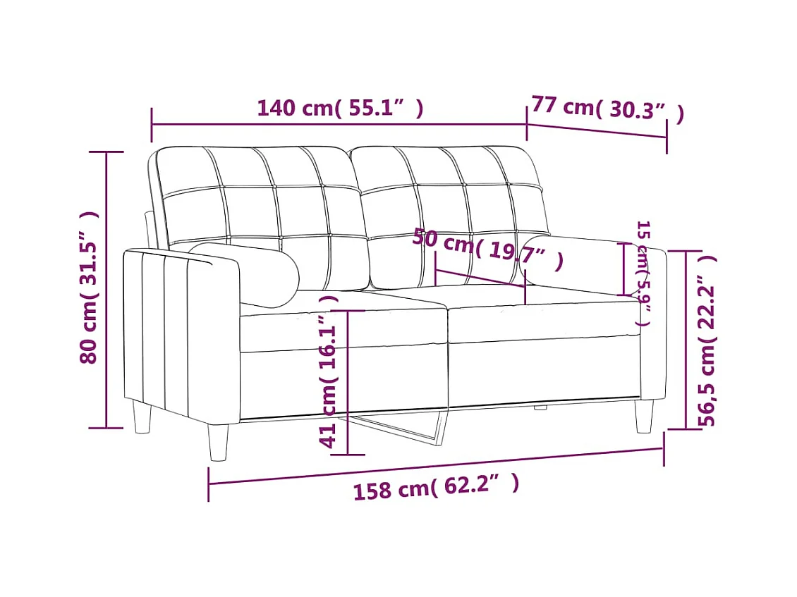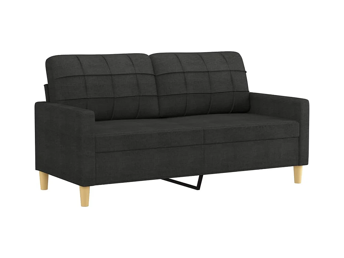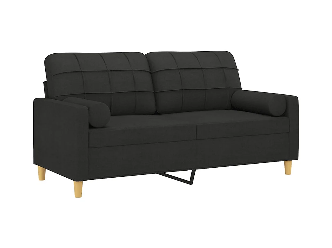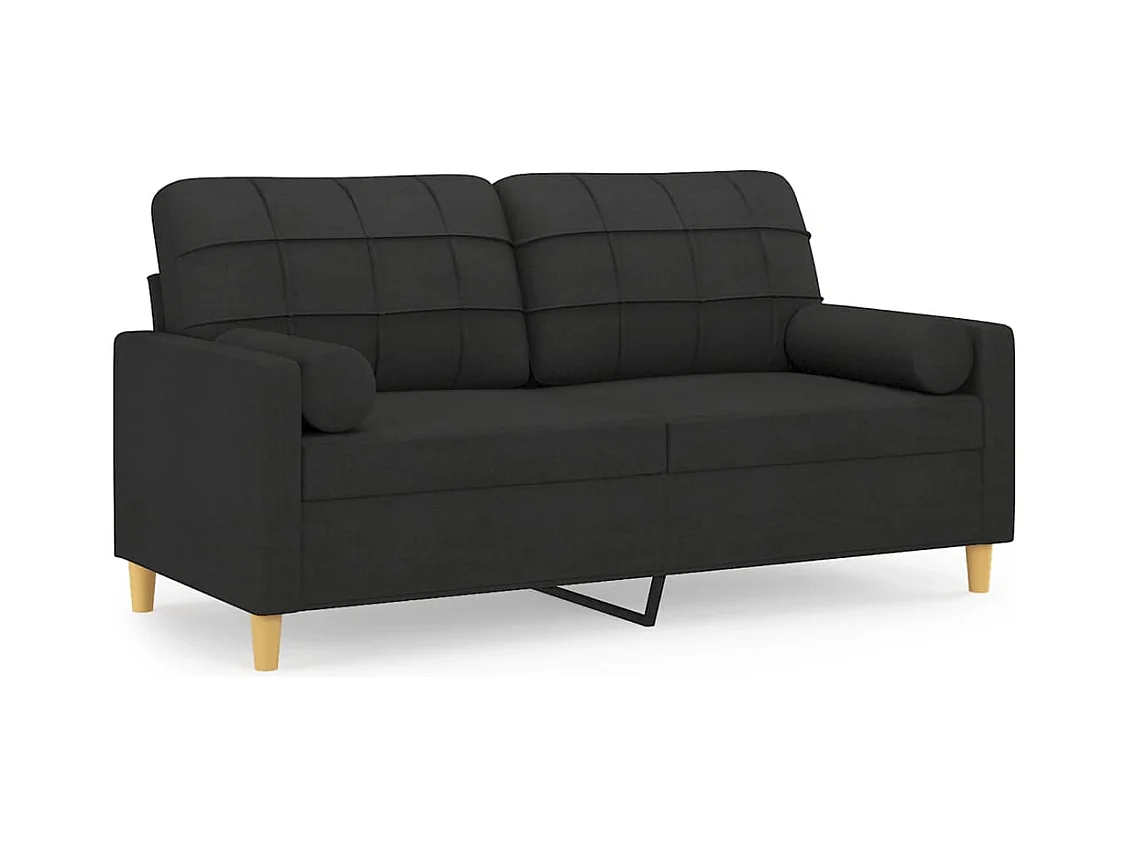 Divano 2 posti con cuscini decorativi tessuto nero 140 cm