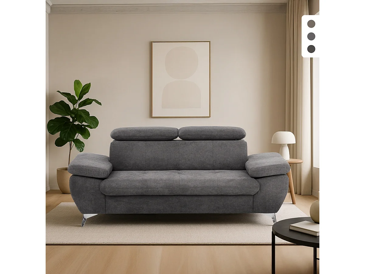 Divano 3 posti design moderno con poggiatesta regolabile Rouna - Grigio Scuro