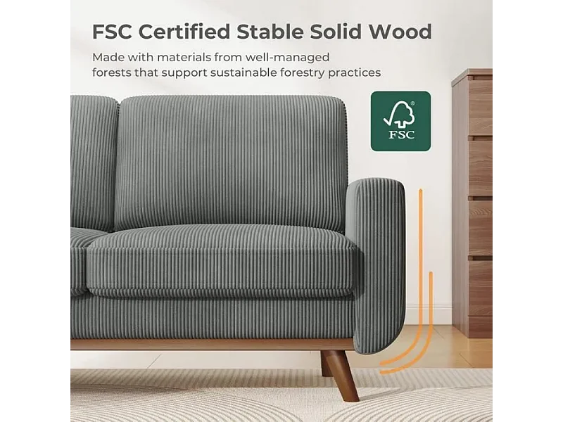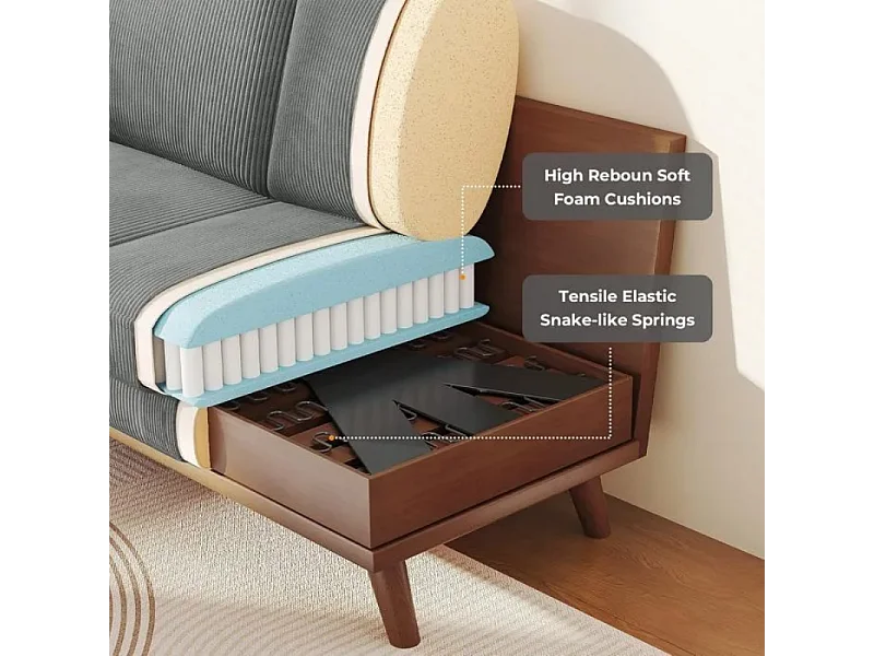 Divano 2 posti, divano in legno massiccio, con un sedile extra profondo, sedile con schienale imbottito - 172x76x88cm