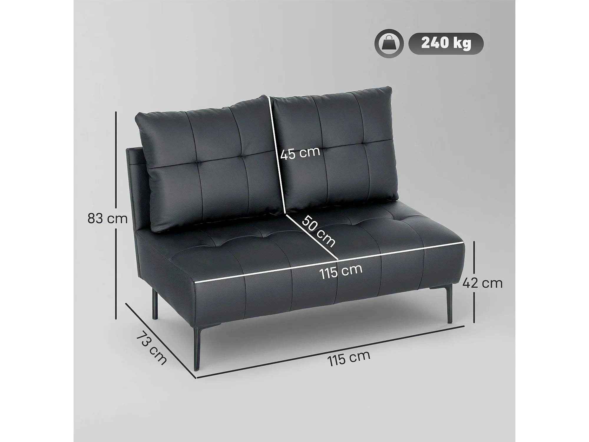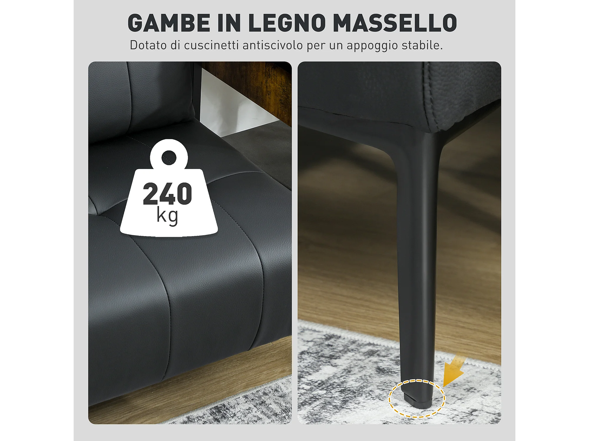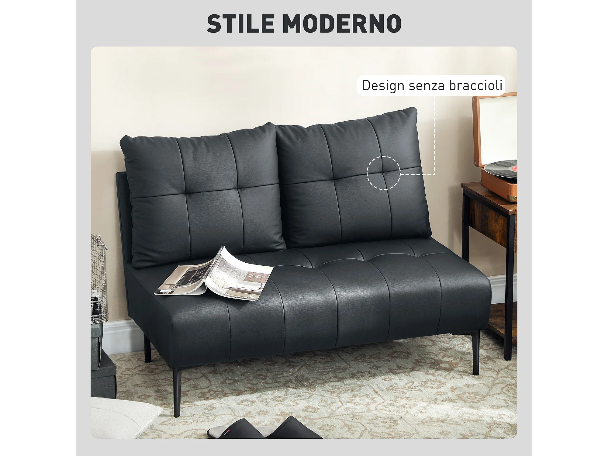 Divano 2 posti finta pelle senza braccioli trapuntato nero