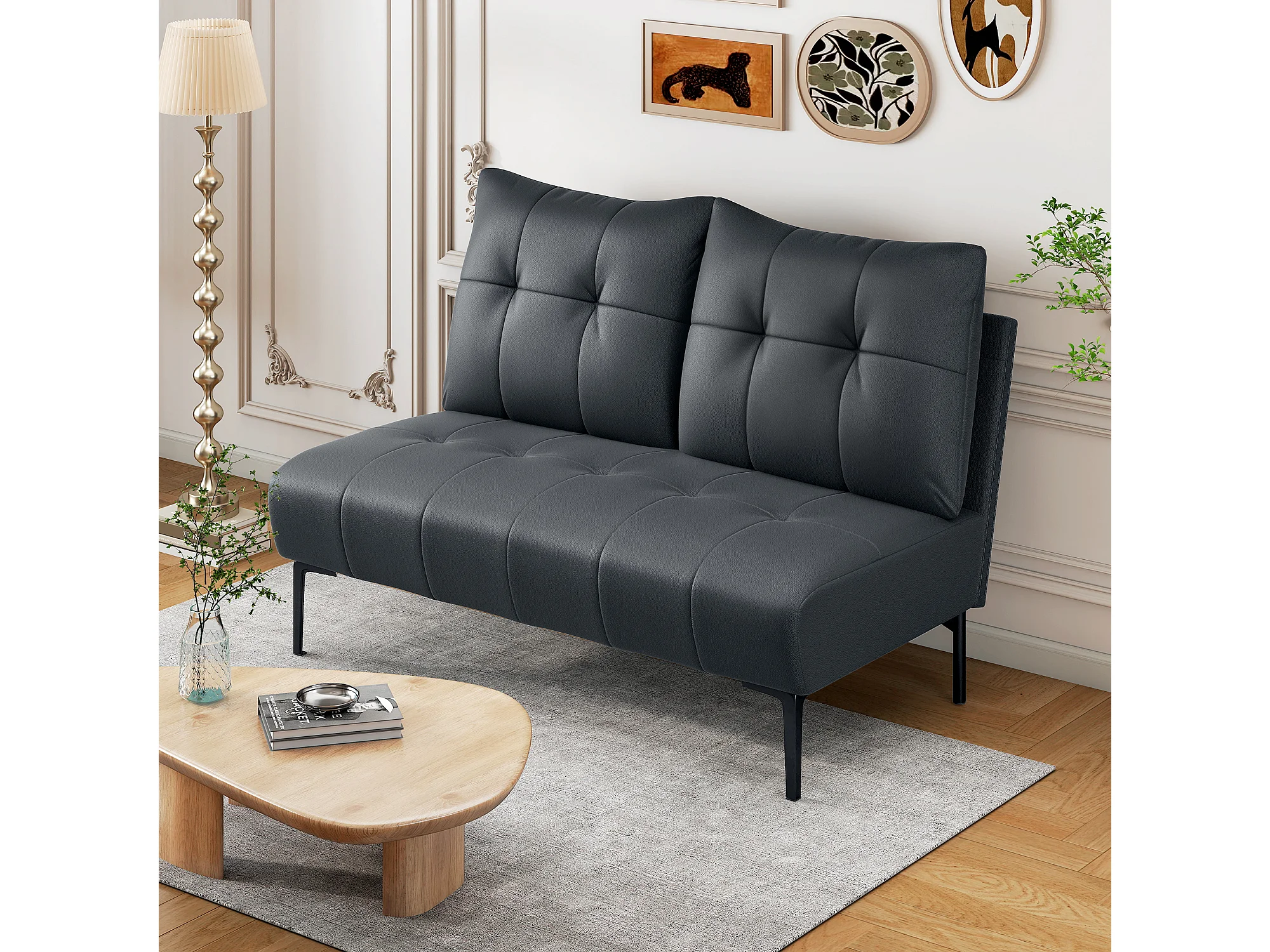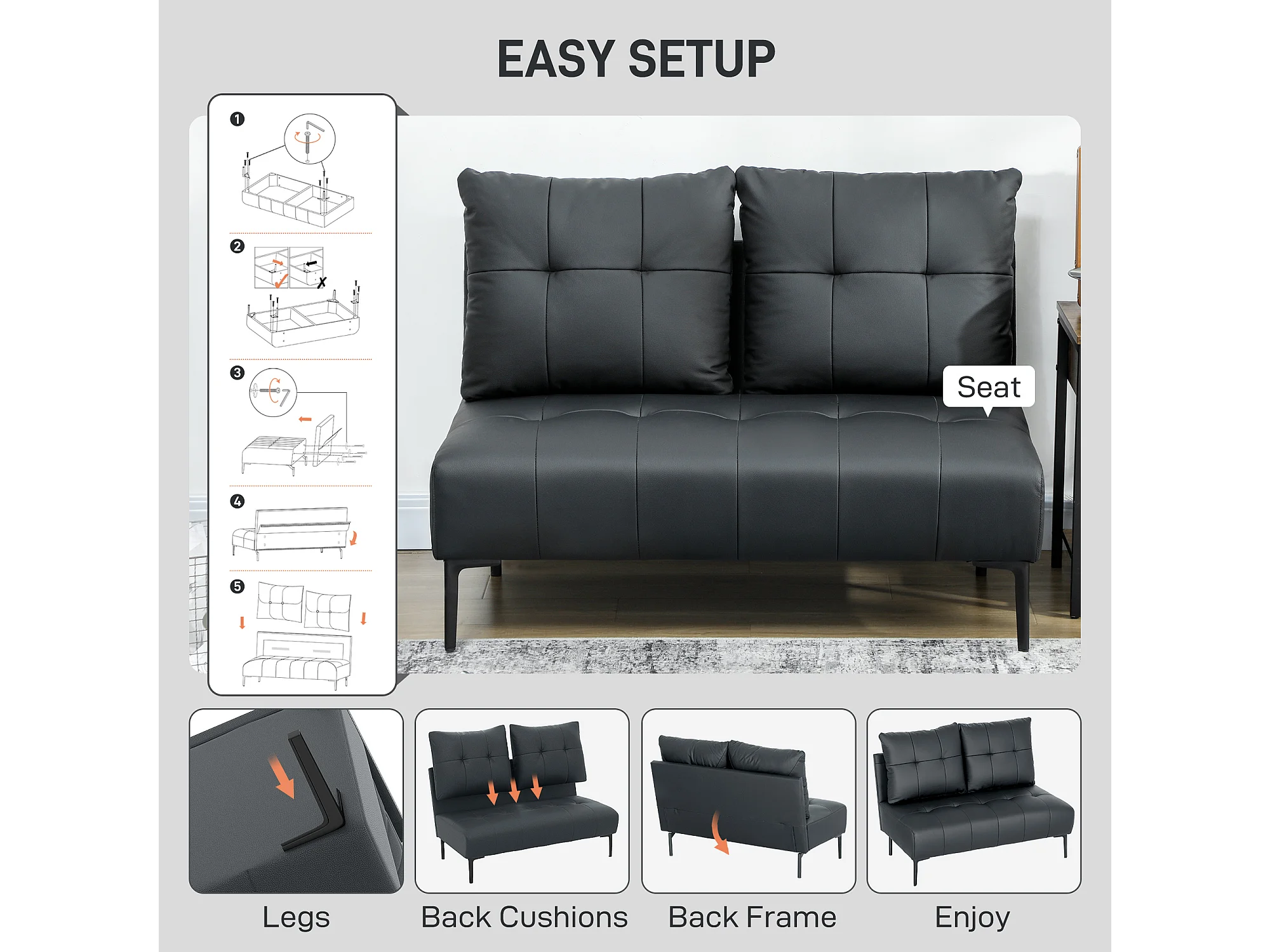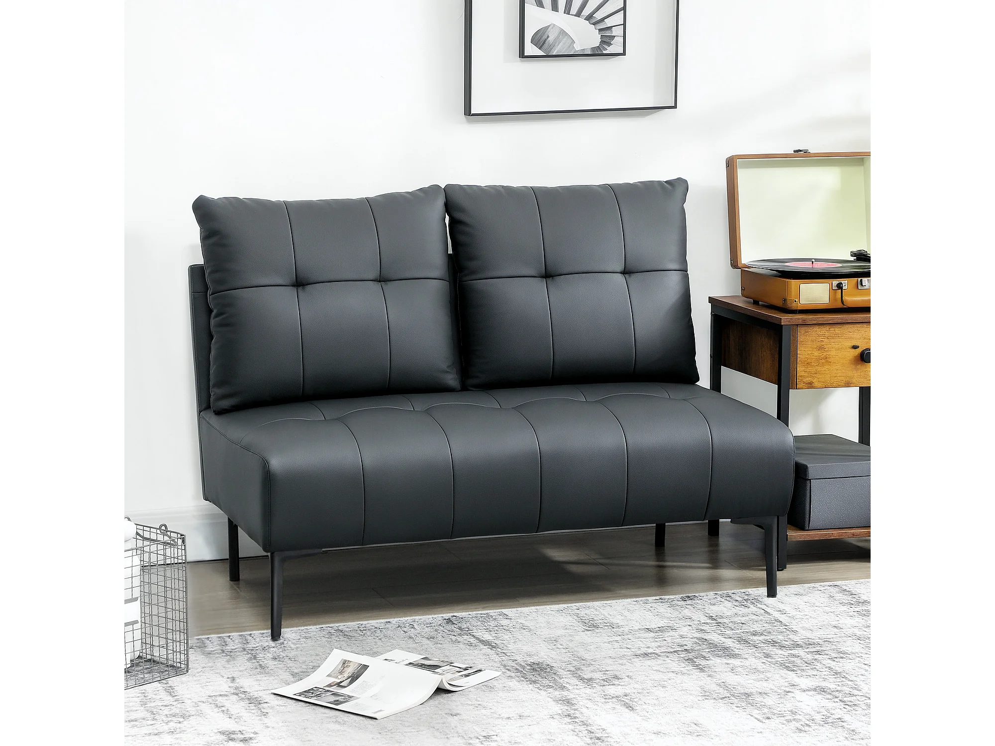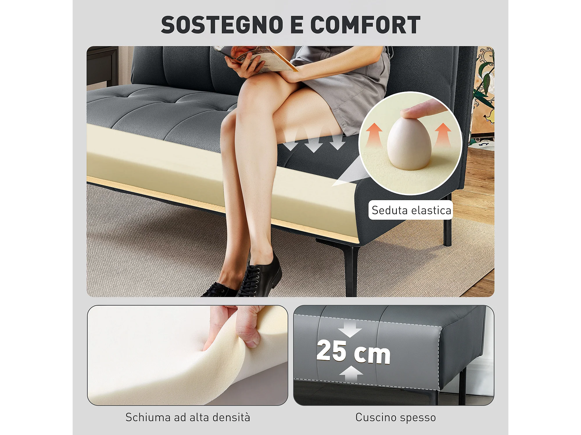 Divano 2 posti finta pelle senza braccioli trapuntato nero
