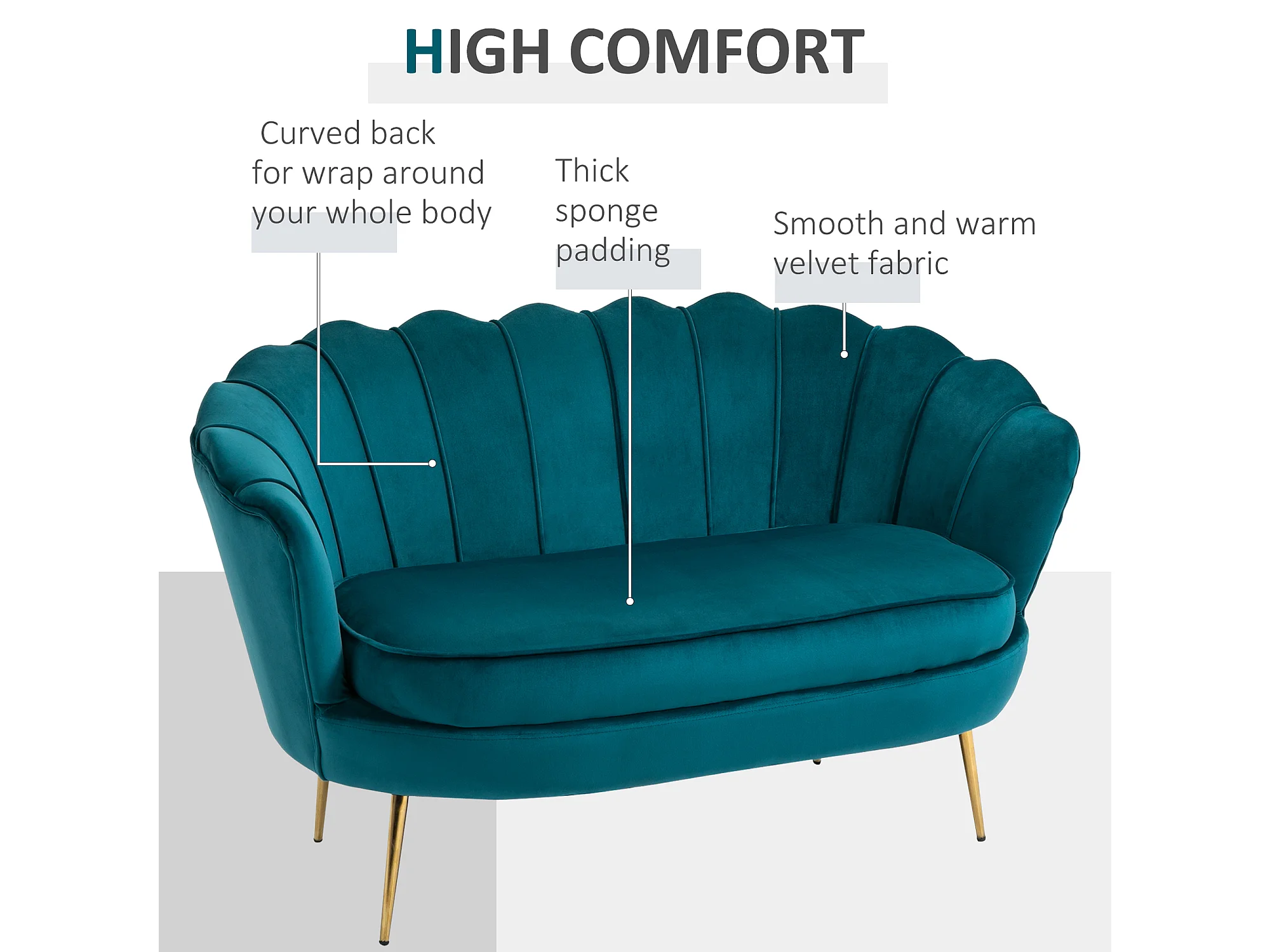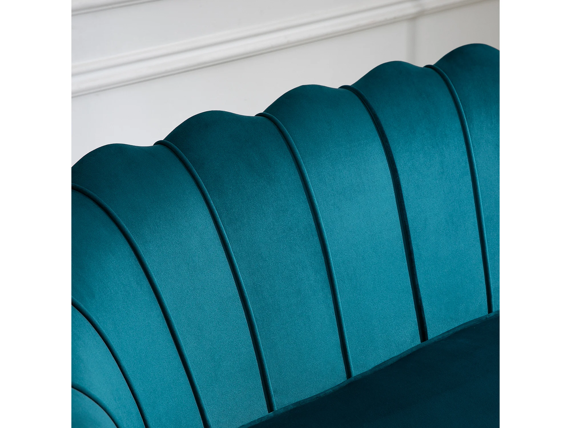 Divano 2 posti in stile vintage chic in tessuto effetto velluto blu