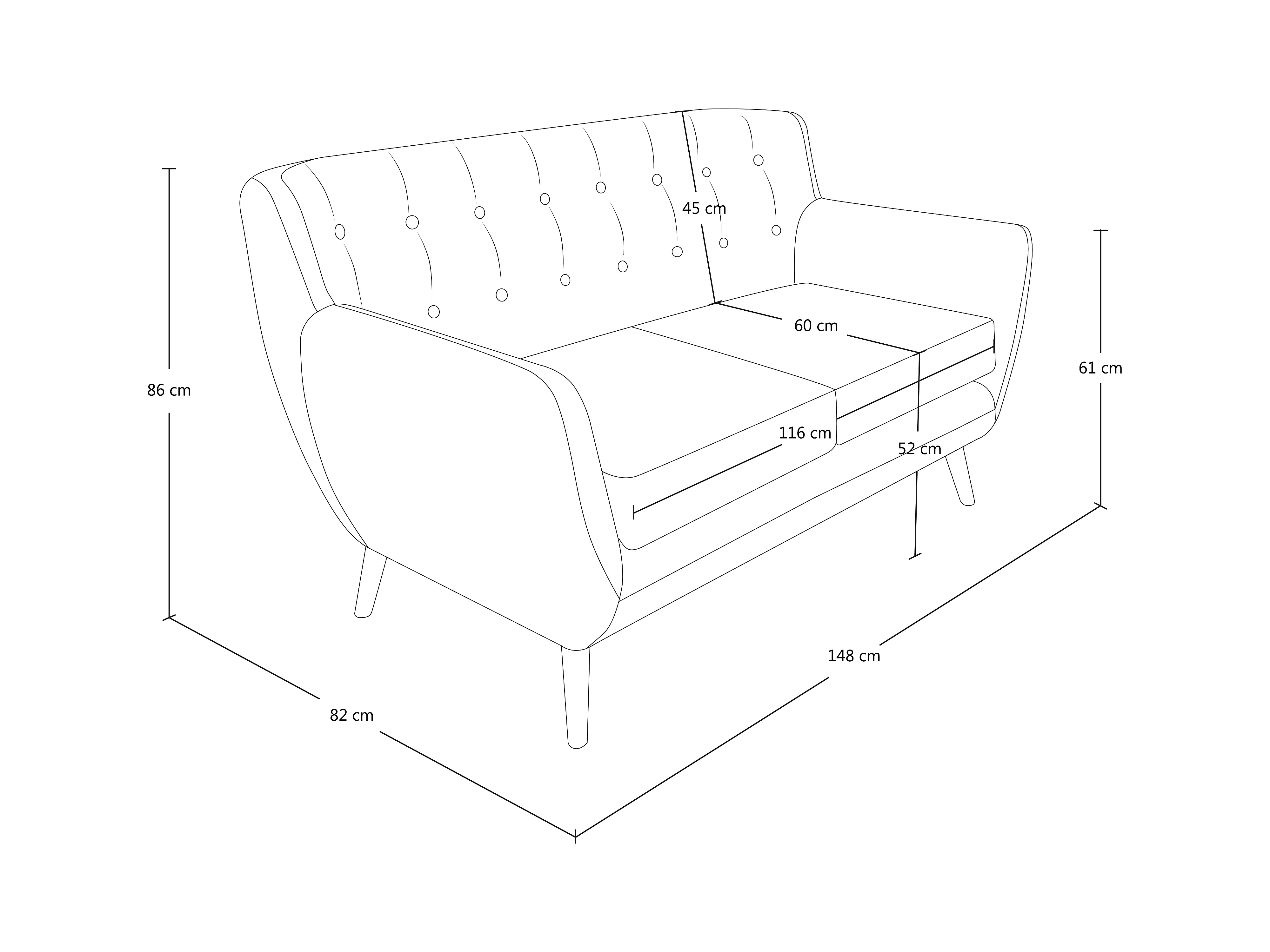 Divano 2 posti in tessuto grigio scuro dallo stile scandinavo mod. Emily