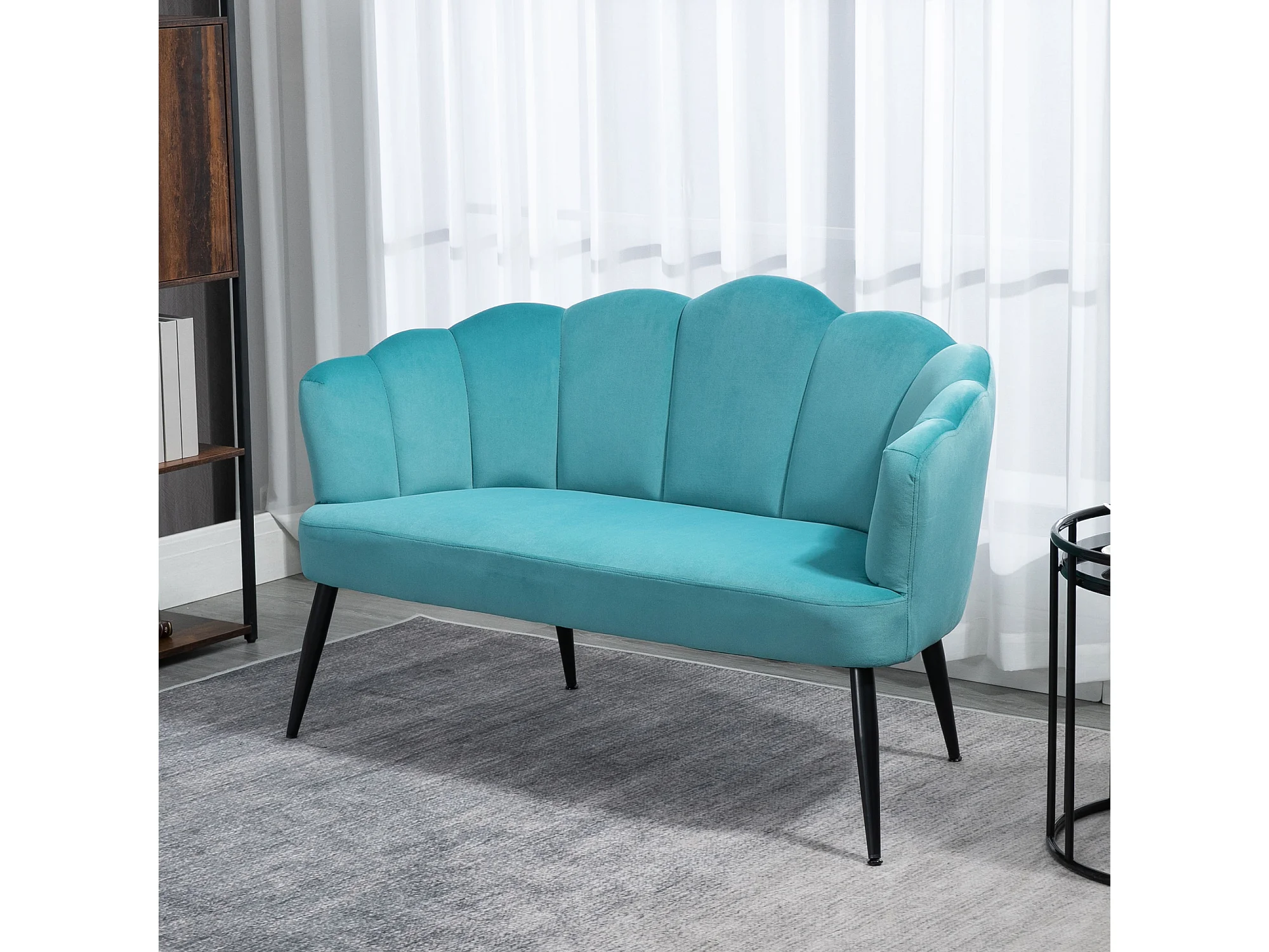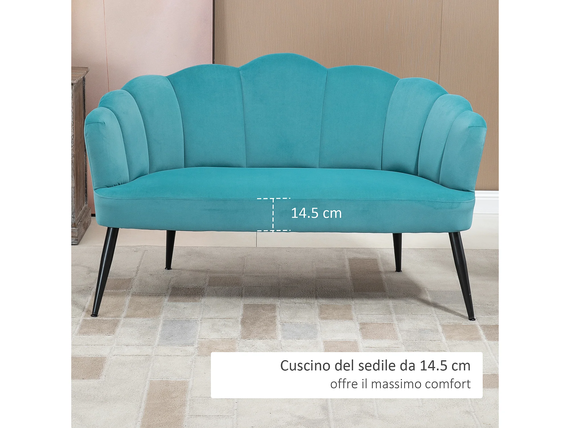Divano 2 posti in velluto con schienale a conchiglia verde