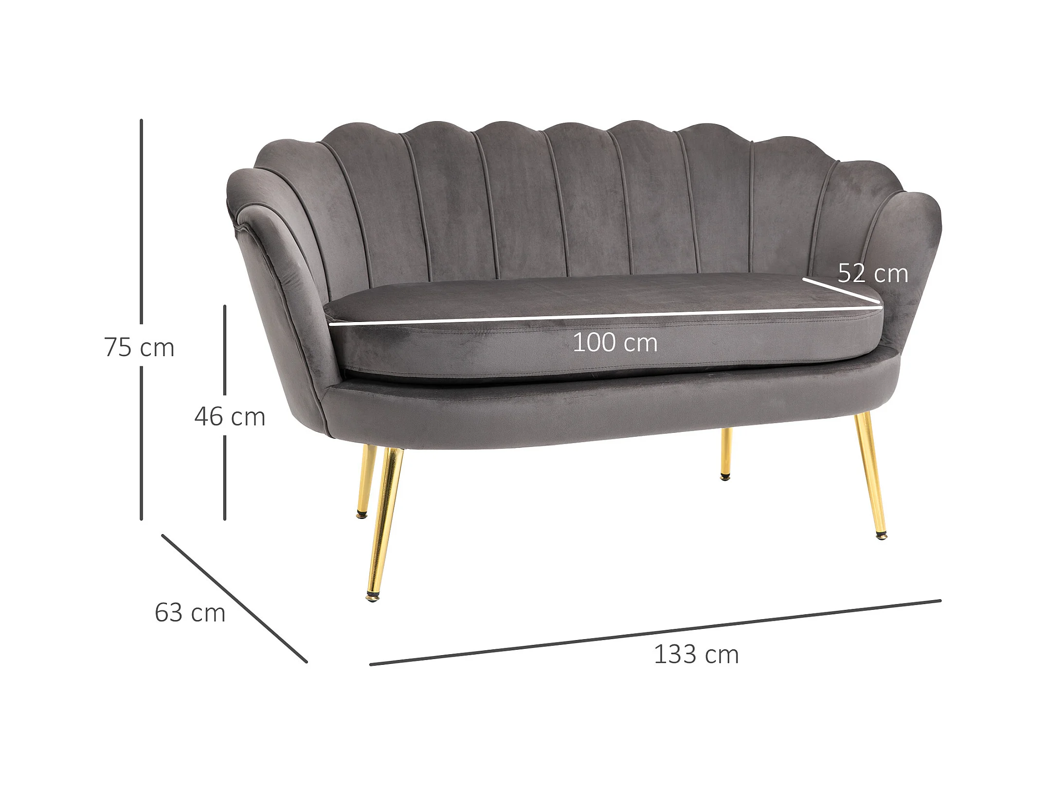Divano 2 posti in velluto con schienale a conchiglia grigio