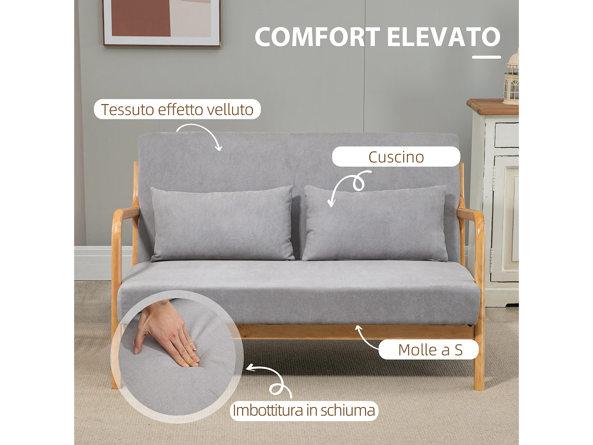 Divano 2 posti moderno con cuscini e seduta imbottita grigio