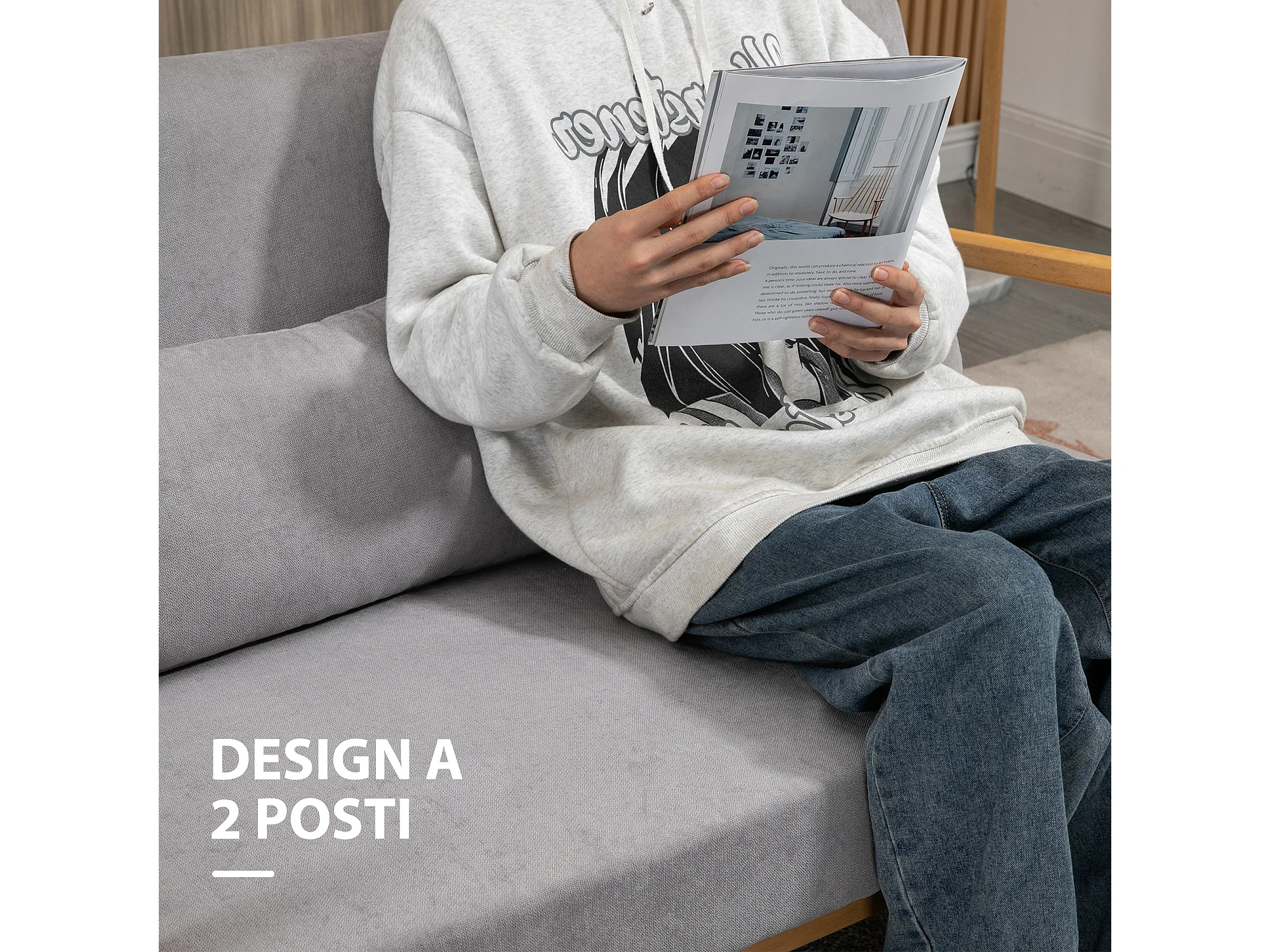 Divano 2 posti con seduta imbottita e braccioli regolabili grigio