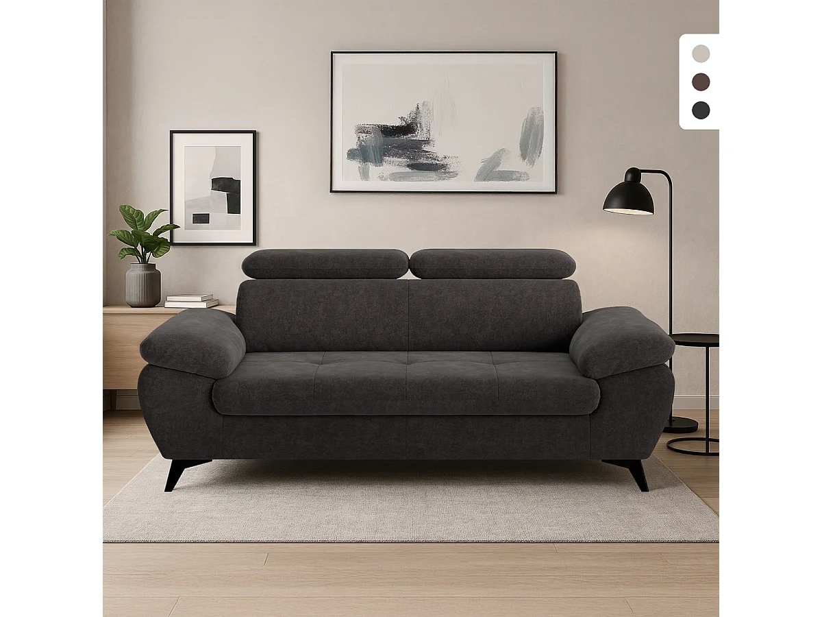 Divano 2 posti moderno in tessuto con poggiatesta regolabile Savi - Nero