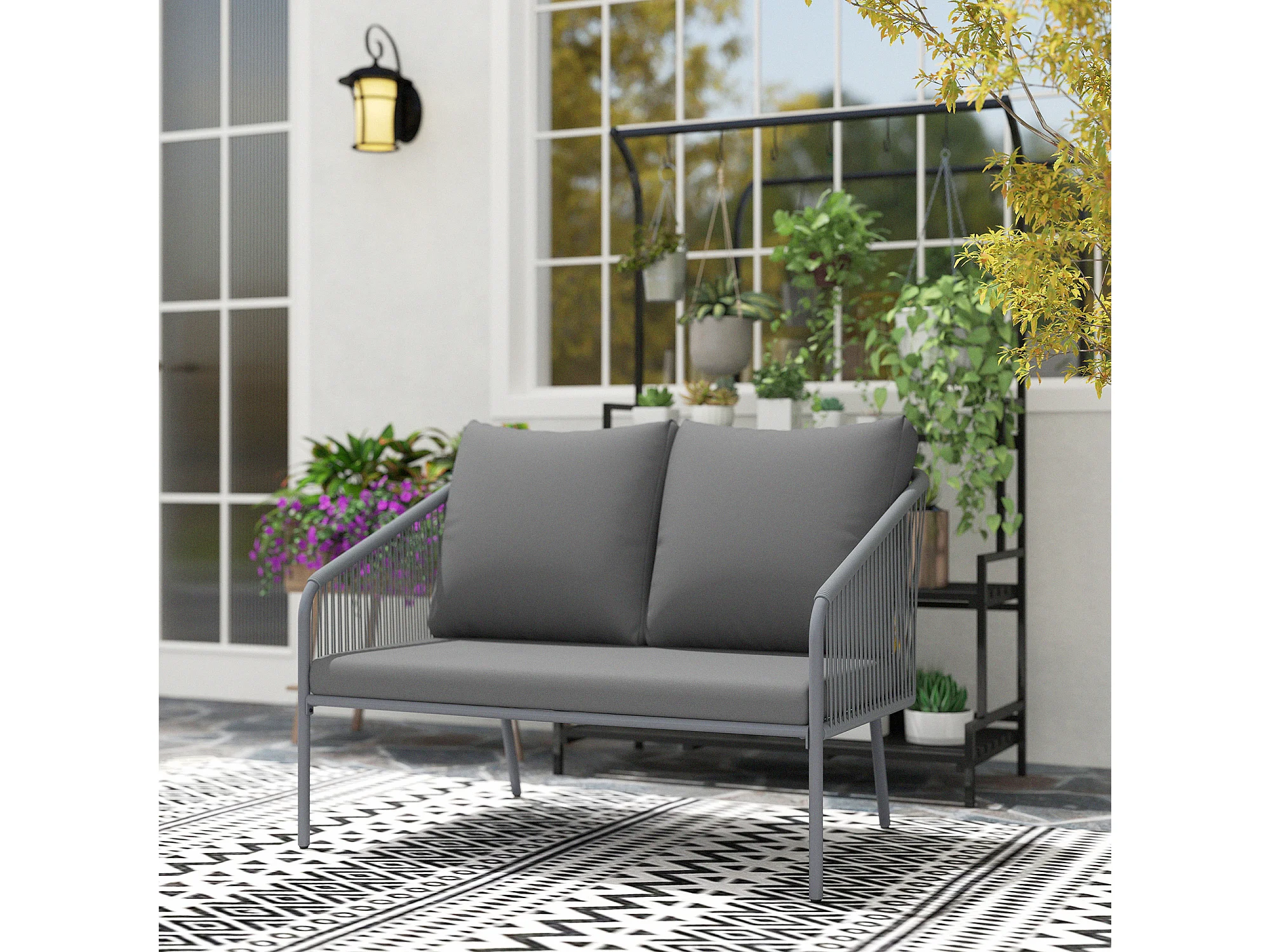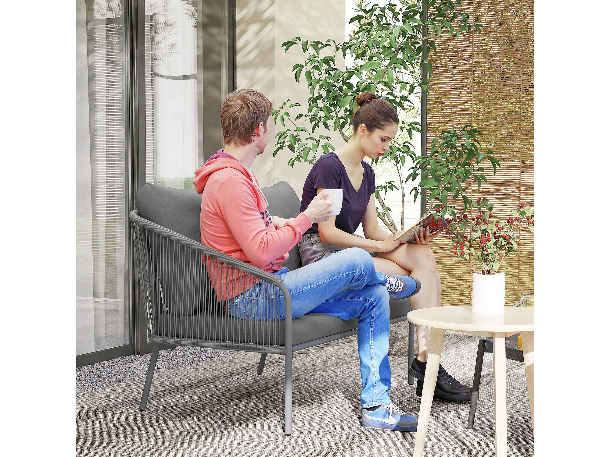 Divano 2 posti stile boho con cuscini sfoderabili in rattan grigio