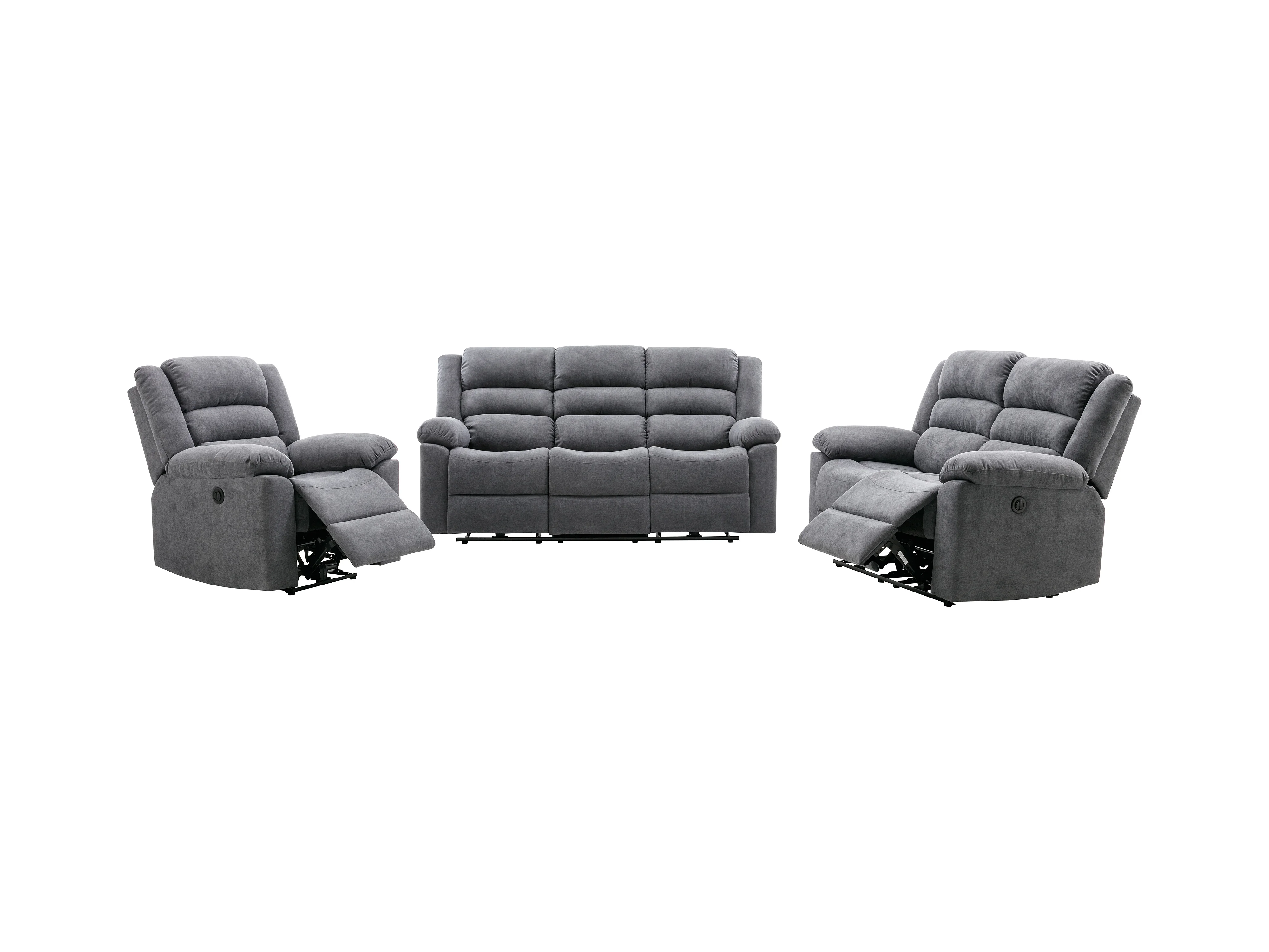 Divano 3 posti, 2 posti e Poltrona relax elettrica in Tessuto Grigio - BUROLO