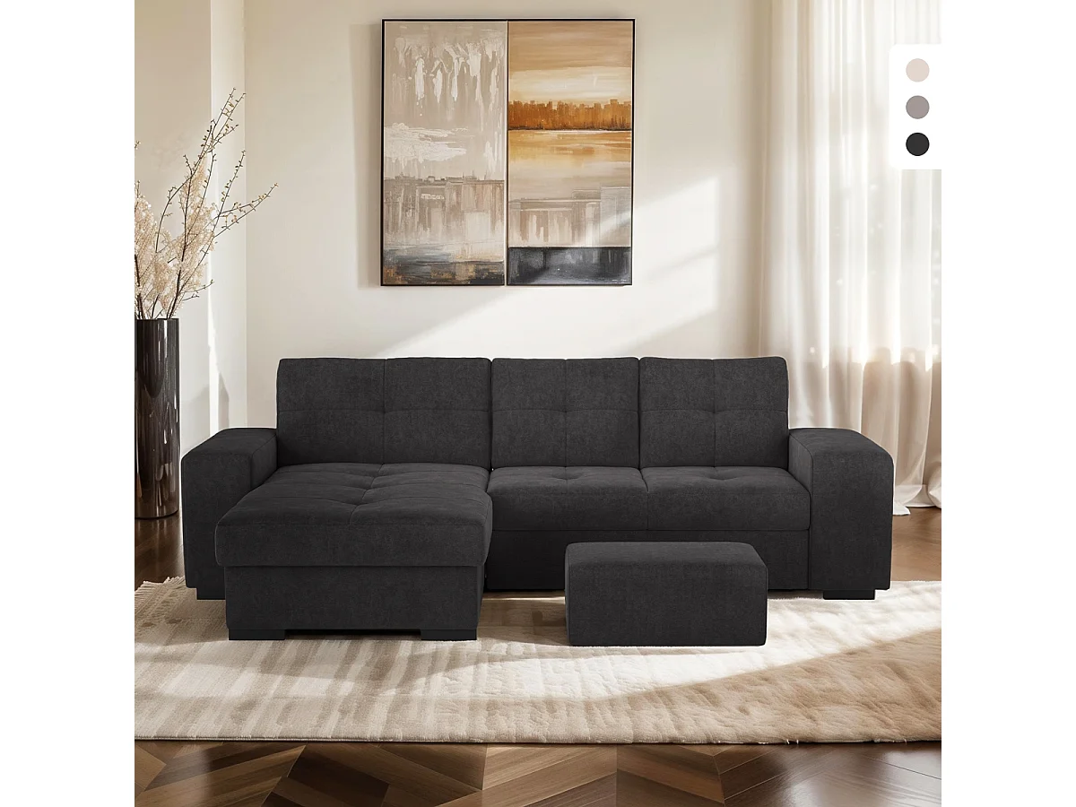 Divano letto 3 posti estraibile con penisola contenitore destra Nuro - Nero